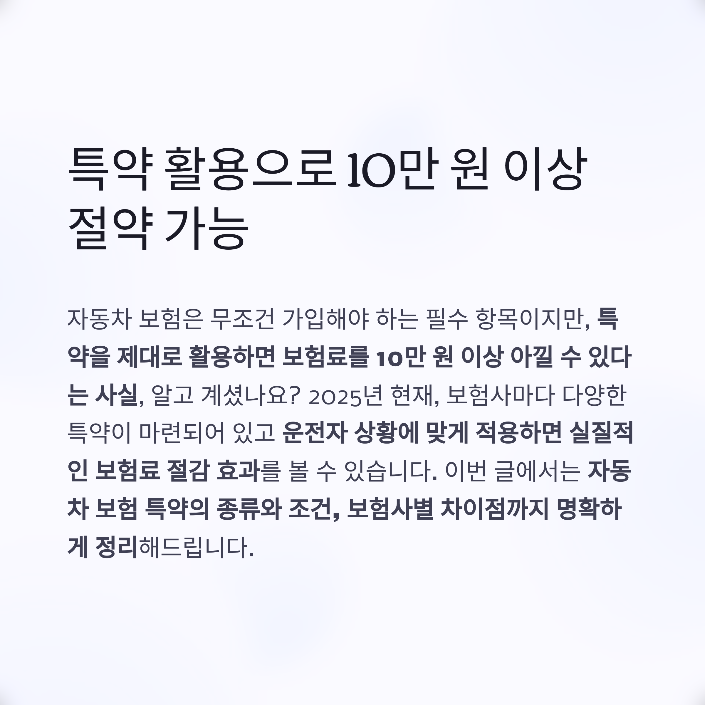 이번 글에서는 자동차 보험 특약의 종류와 조건, 보험사별 차이점까지 명확하게 정리해드립니다.