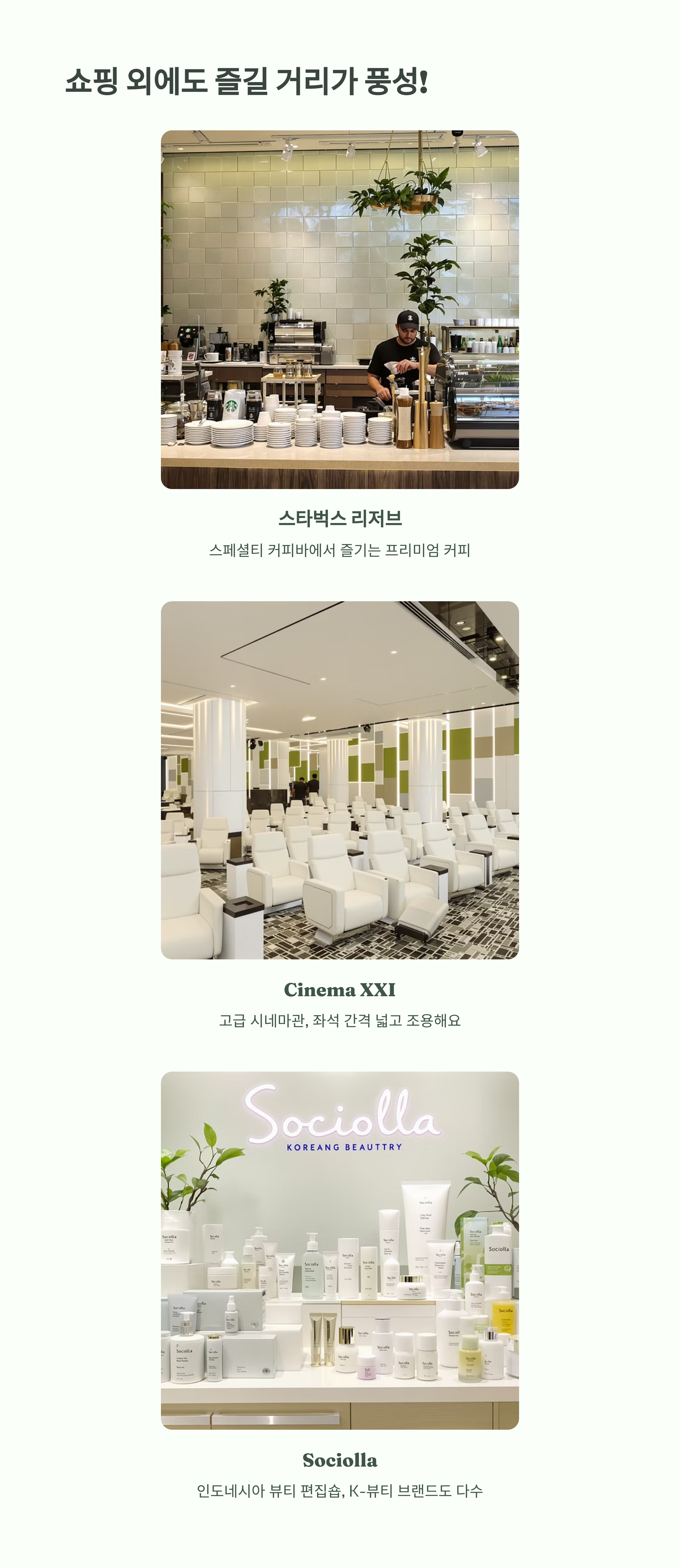 쇼핑, 맛집, 카페, 영화관, 뷰티까지 한 번에 해결할 수 있어