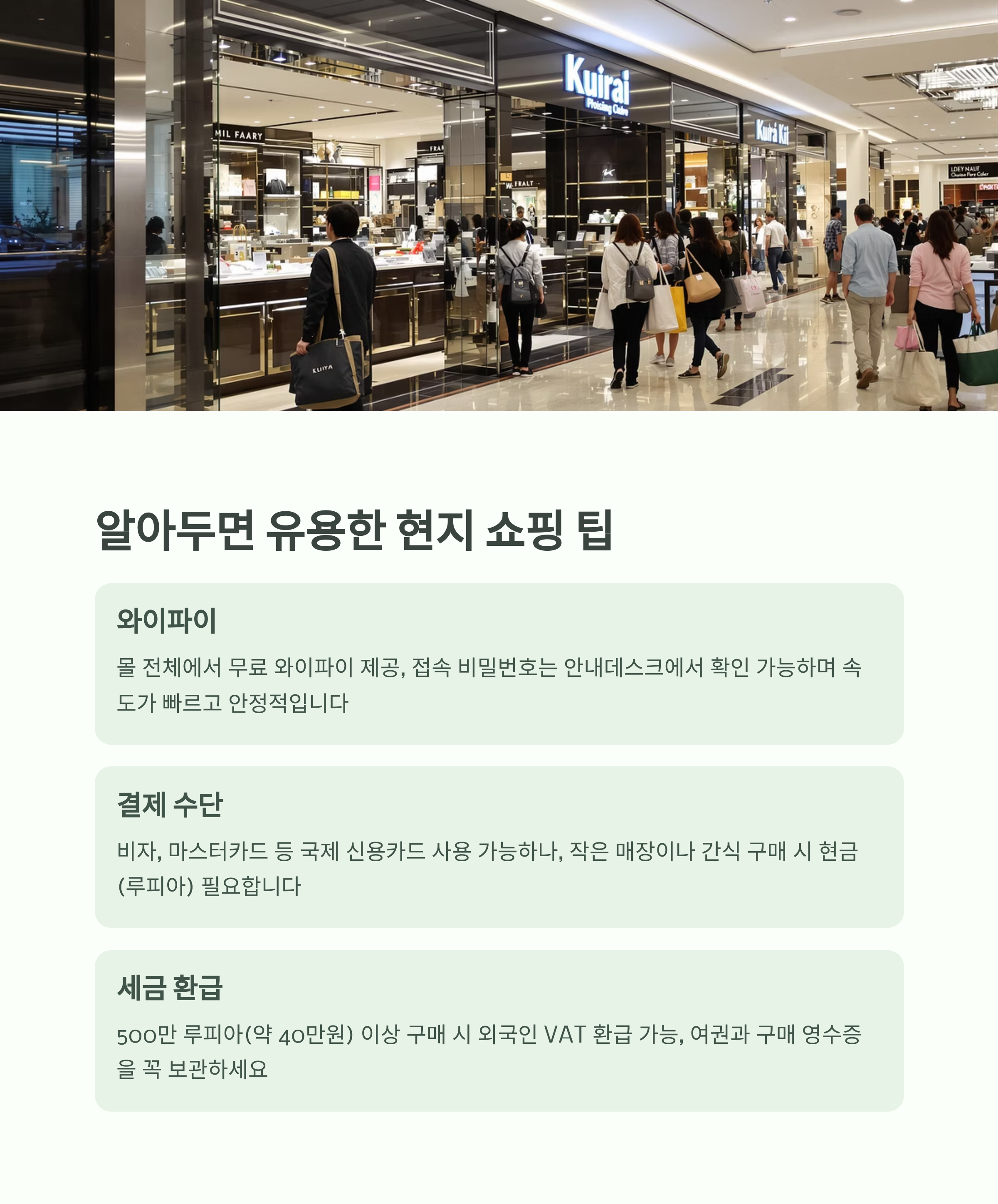 | 세금 환급 | 일부 매장에서 외국인 VAT 환급 가능 |