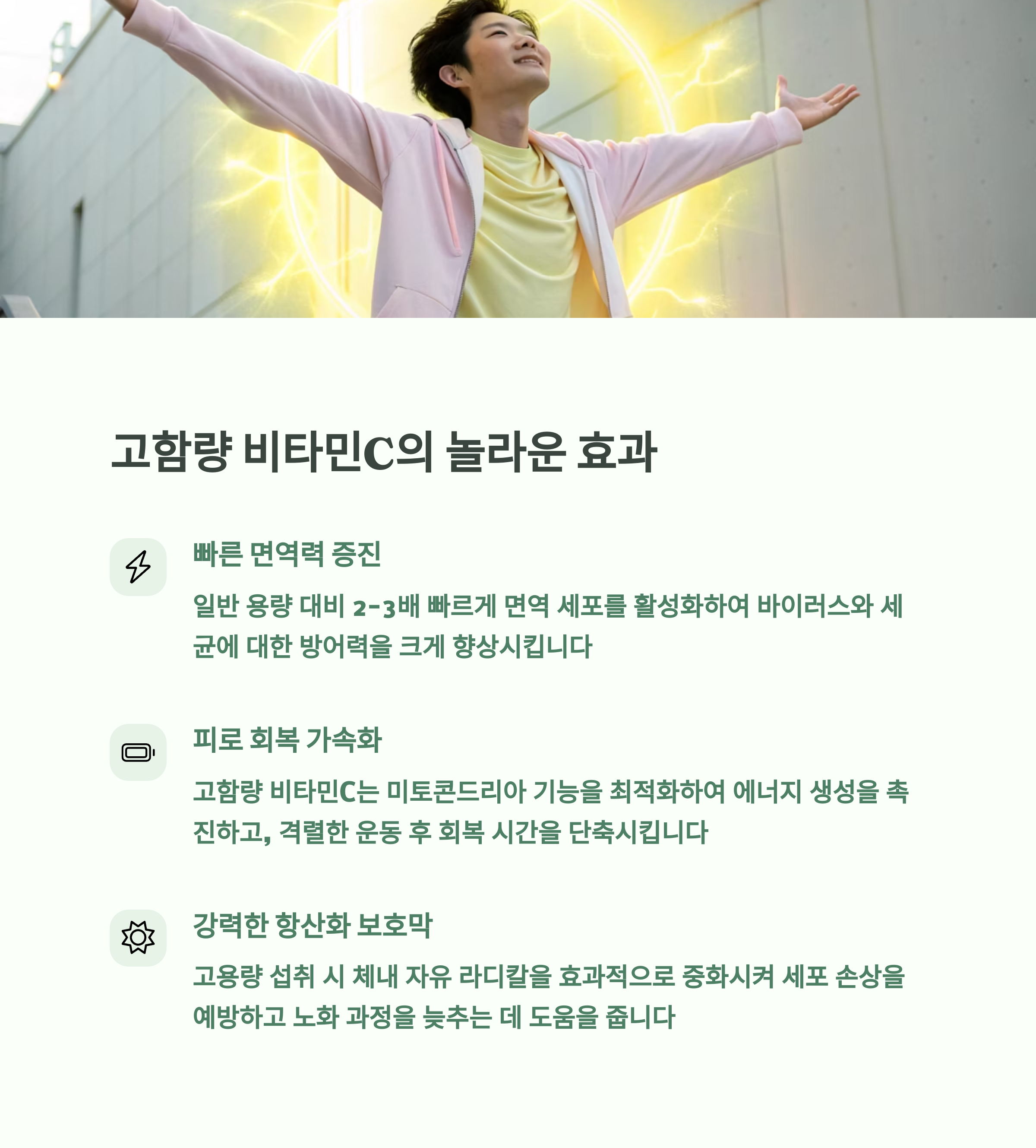 "피부 건강, 상처 치유, 철분 흡수 촉진에도 반드시 필요한 필수 비타민입니다."