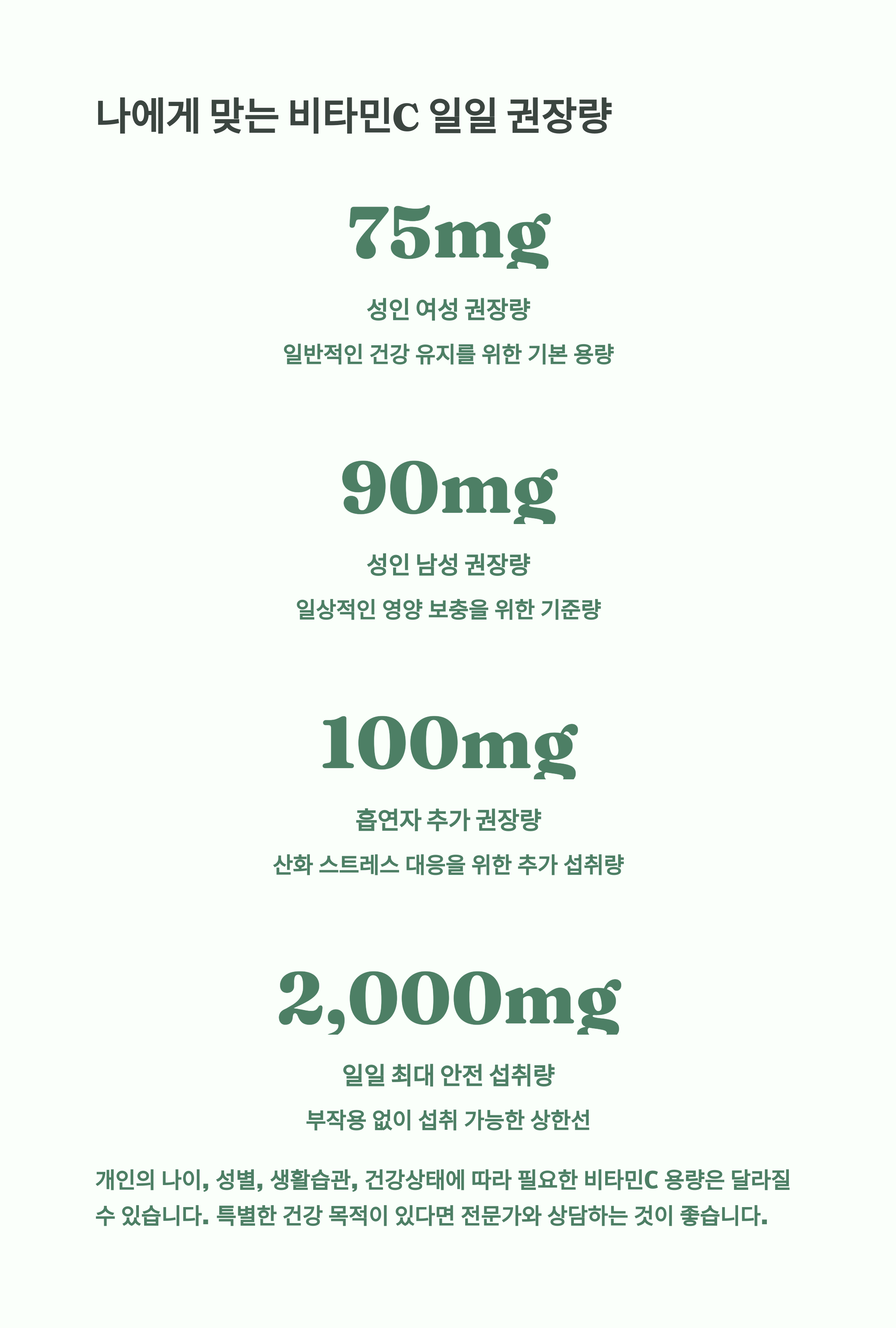 "감기 예방이나 스트레스가 많을 경우 1,000mg까지 섭취하는 것도 가능합니다."