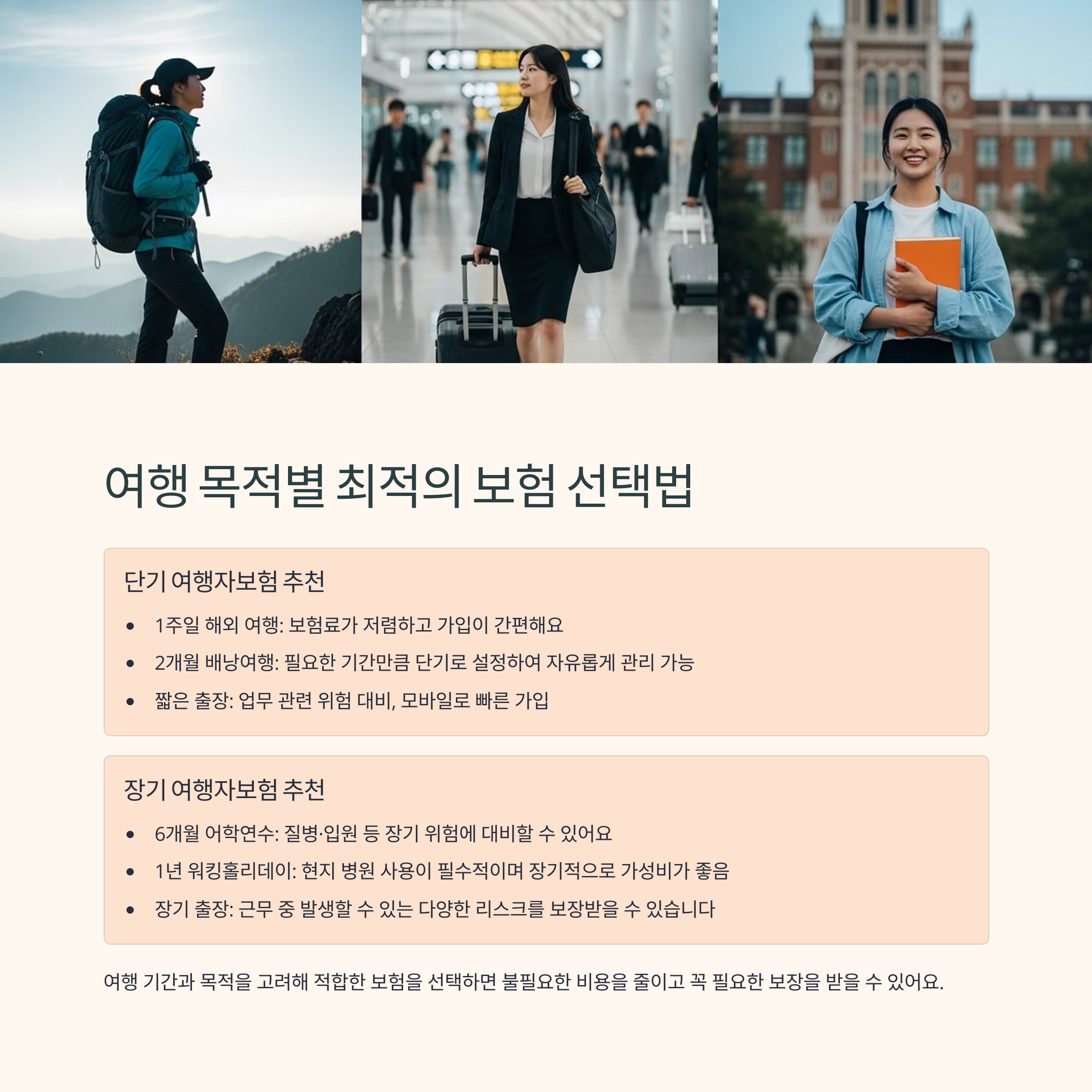 여행 기간과 목적에 따라 달라지는 보험, 당신에게 맞는 건 무엇인가요?