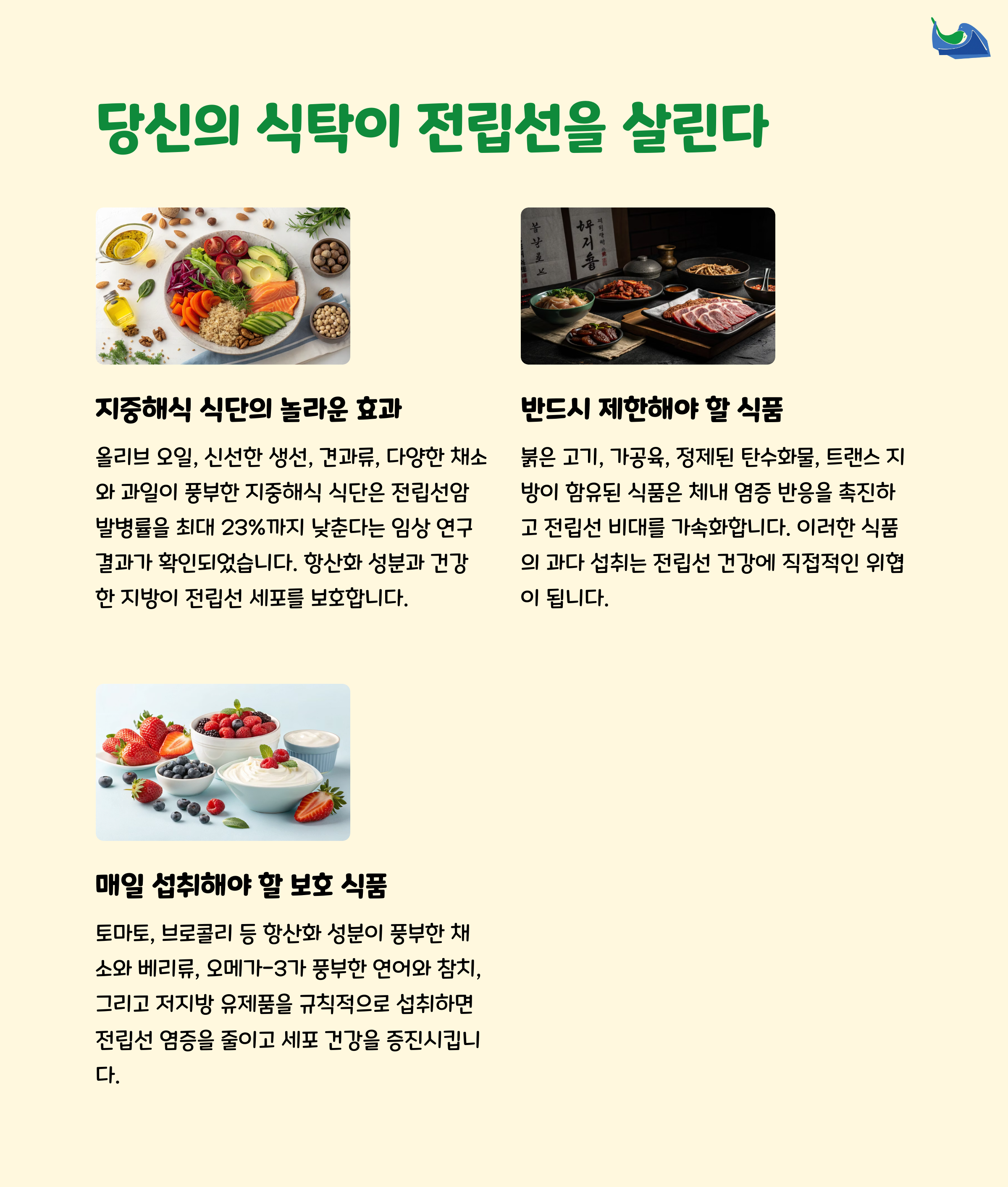 항산화 식품과 항염 성분이 풍부한 식단을 실천하세요.