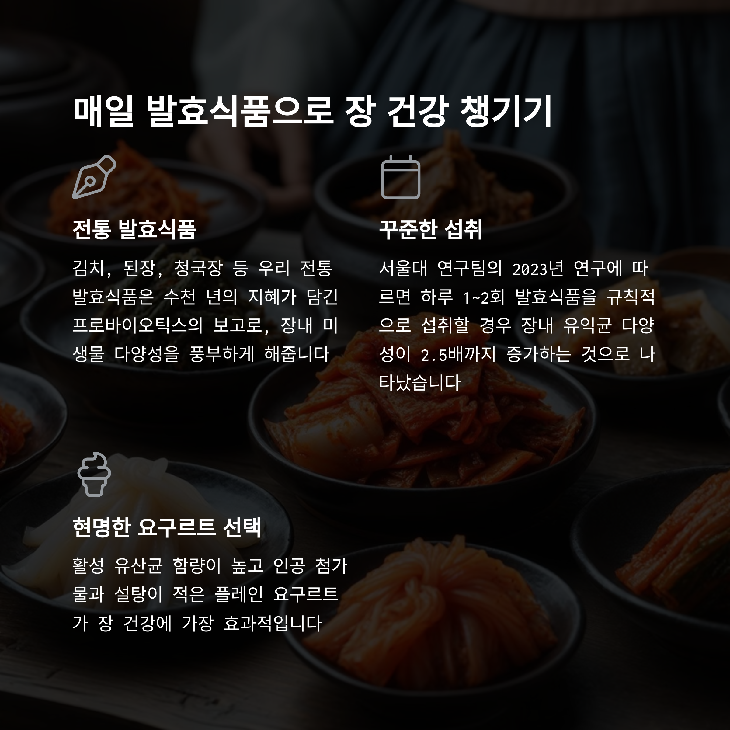 "하루 한 끼라도 발효식품을 식단에 포함하면 장 건강에 큰 도움이 됩니다."