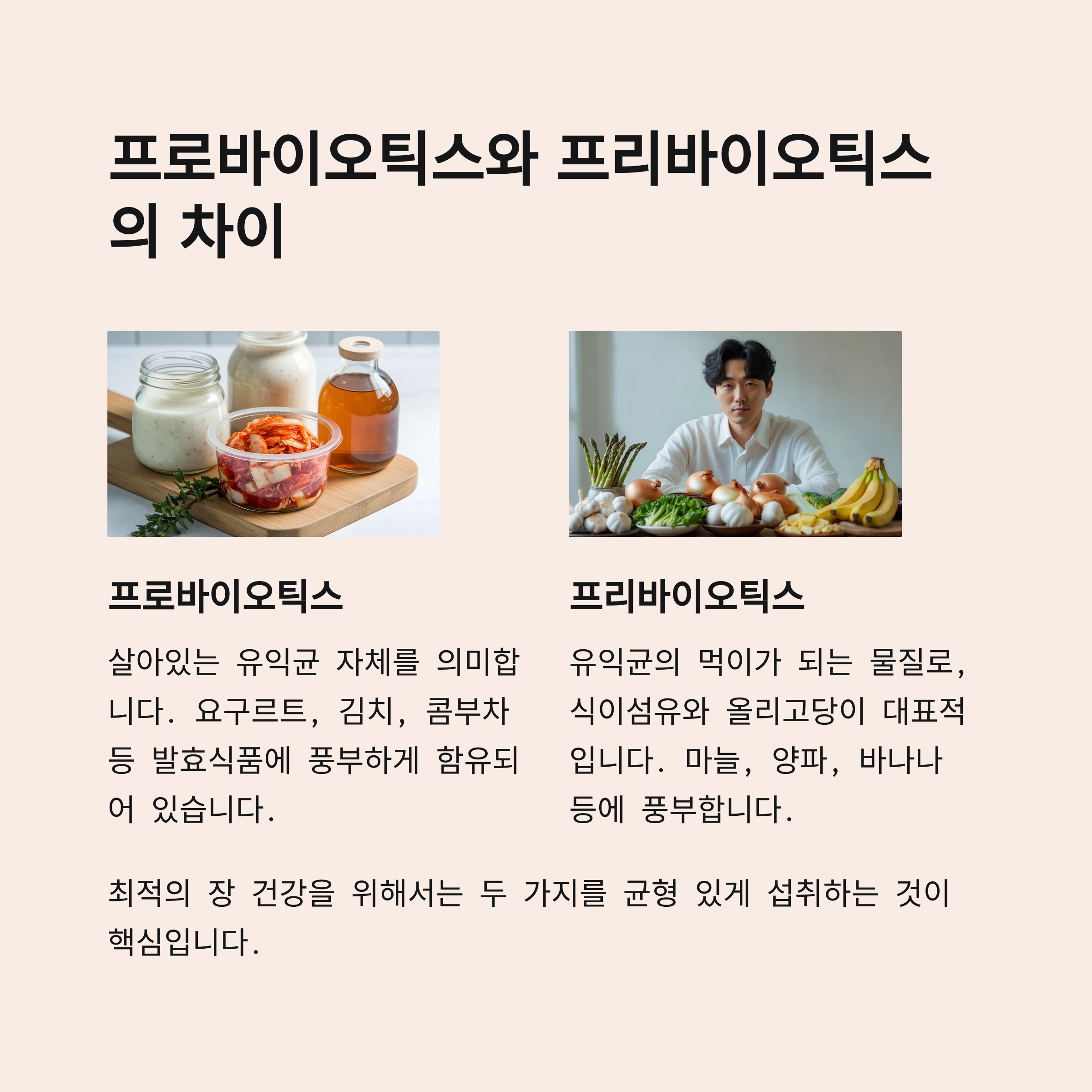 프로바이오틱스는 유익균 자체를 공급하고, 프리바이오틱스는 유익균의 먹이가 됩니다.