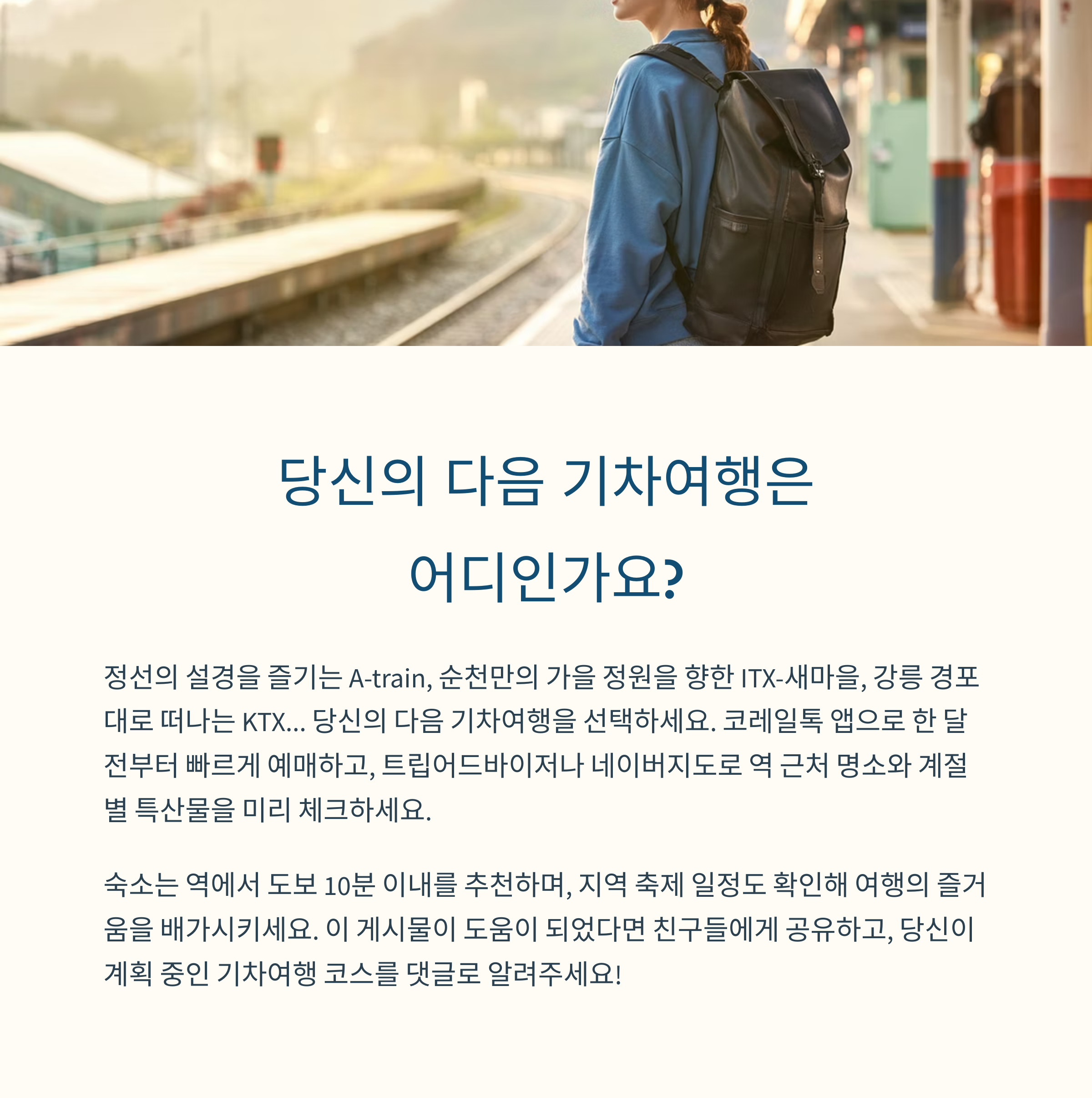 KTX부터 관광열차까지, 기차로 갈 수 있는 대한민국 여행지 완전 정복!
