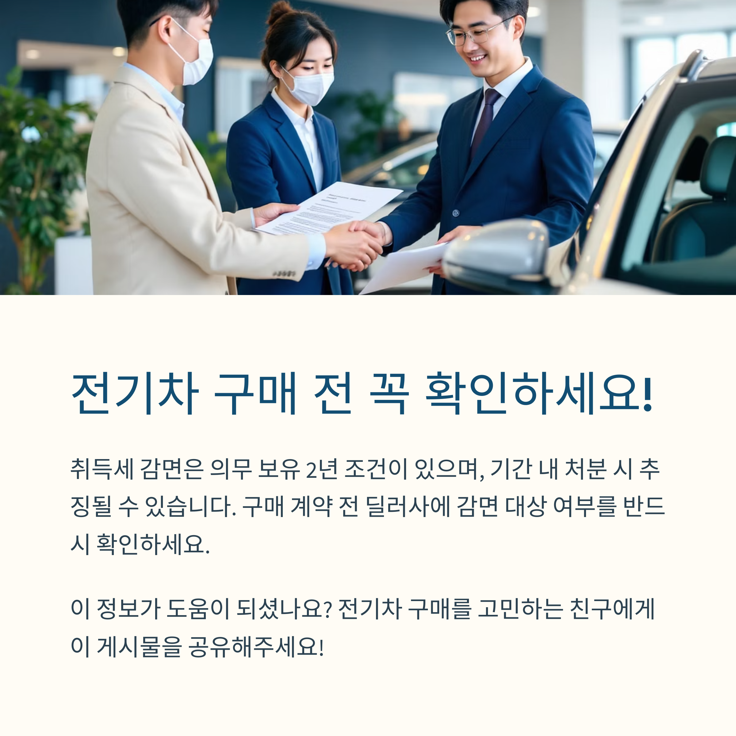 "차량 구매 계약 전에 감면 대상 여부를 딜러사에 꼭 확인하세요!"