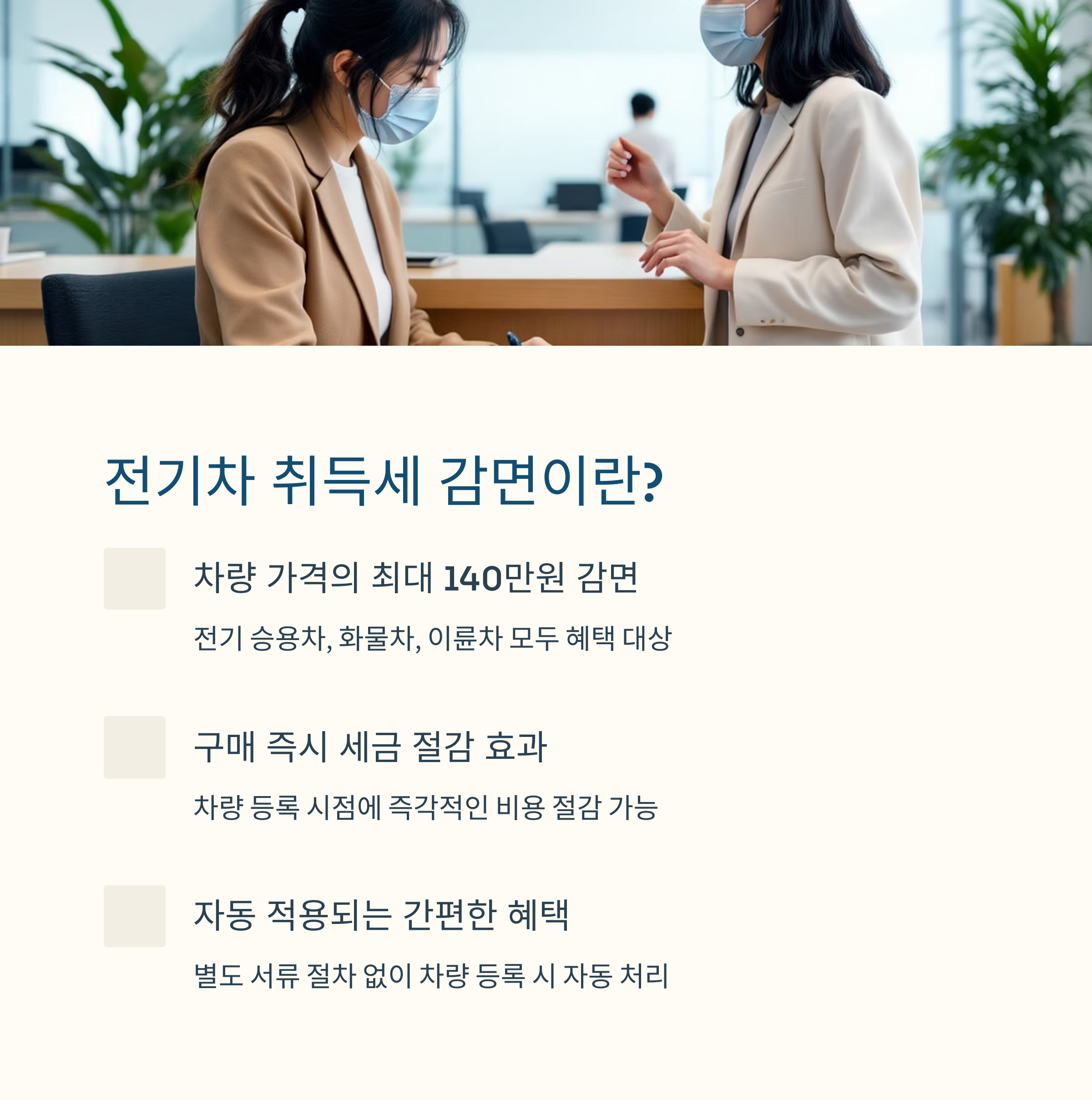 - 지역에 따라 추가 감면 혜택도 가능 (예: 서울시 친환경 차량 감면)