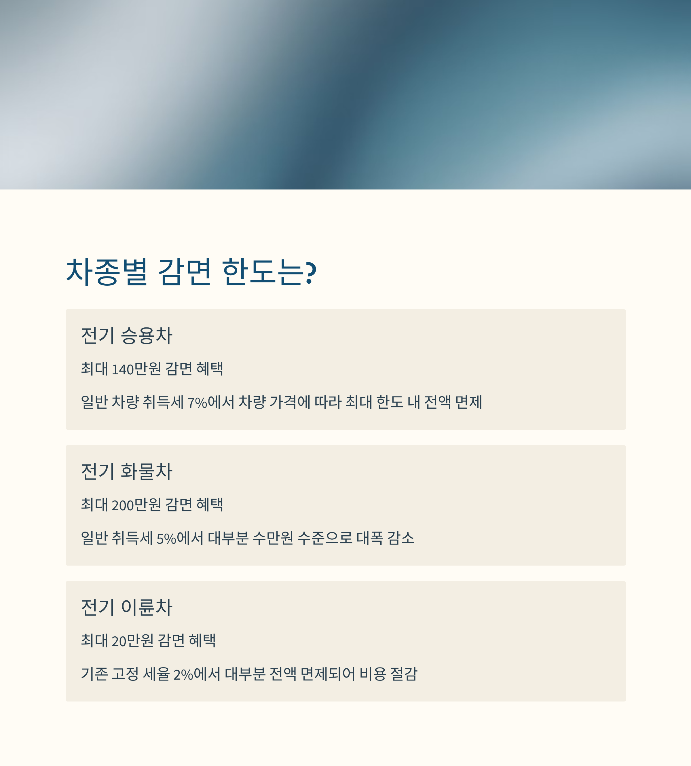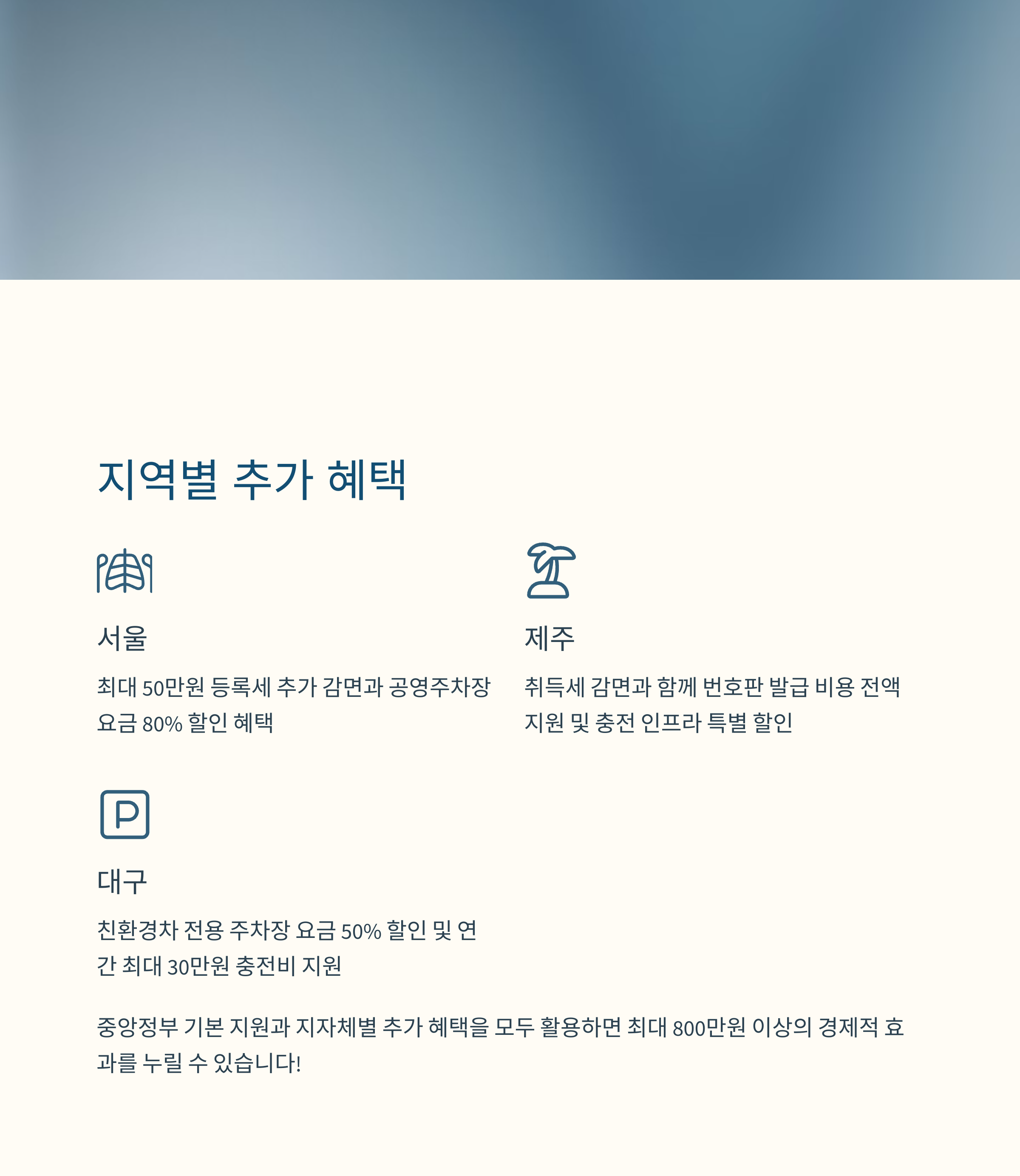 • 지역에 따라 추가 감면 혜택도 가능 (예: 서울시 친환경 차량 감면)