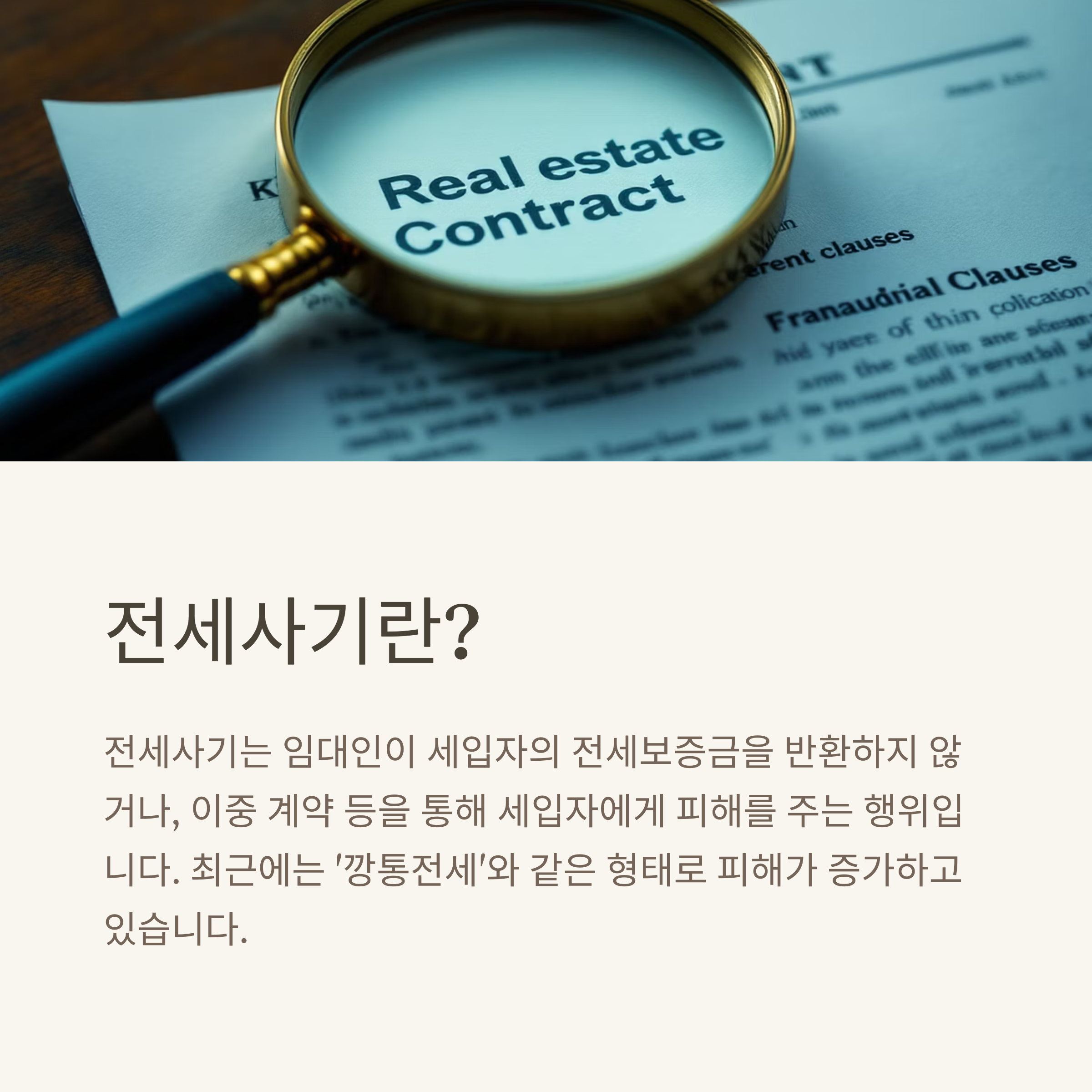 최근에는 '깡통전세'와 같은 형태로 피해가 증가하고 있습니다.