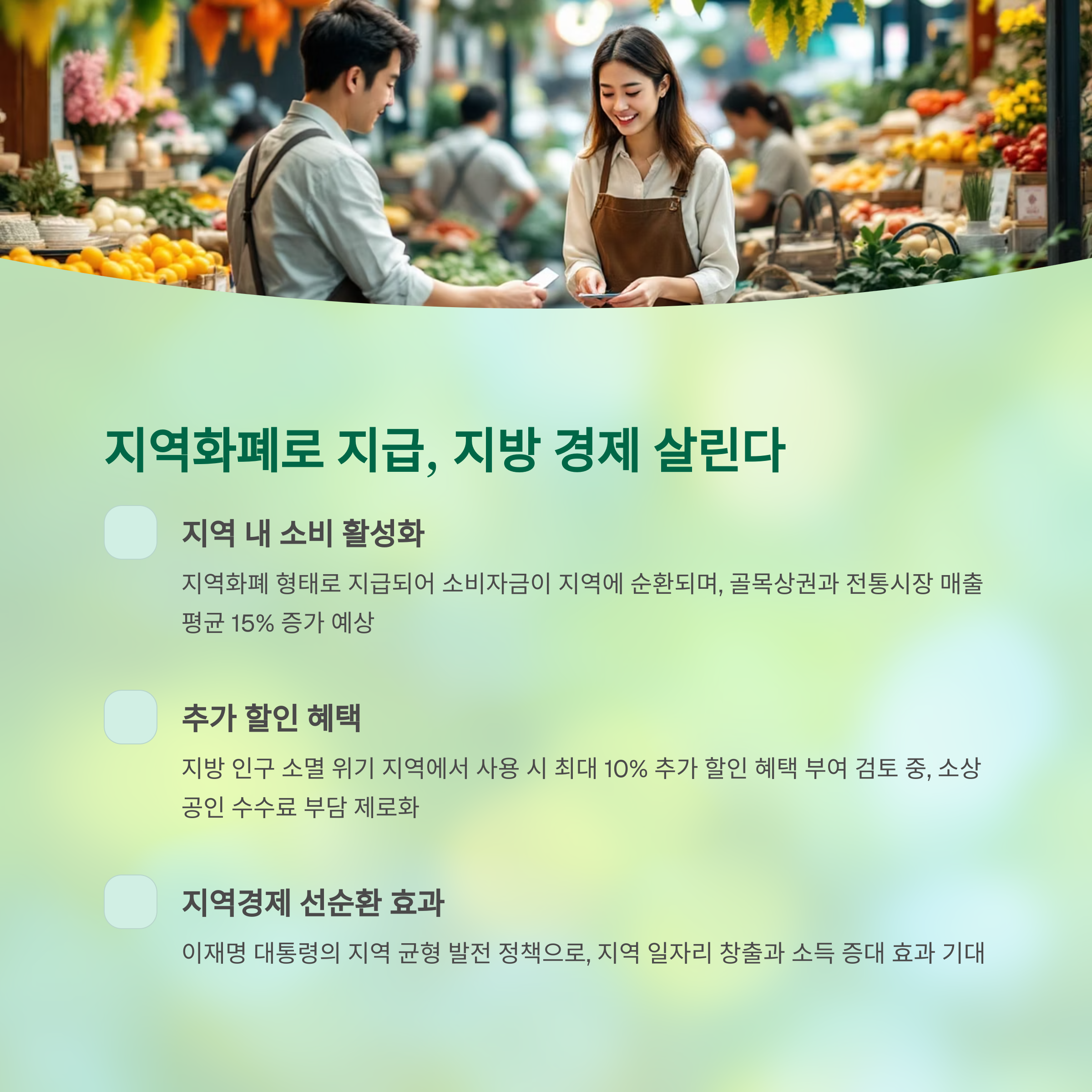| 사용처 제한 | 골목상권, 전통시장 소비 증가 |