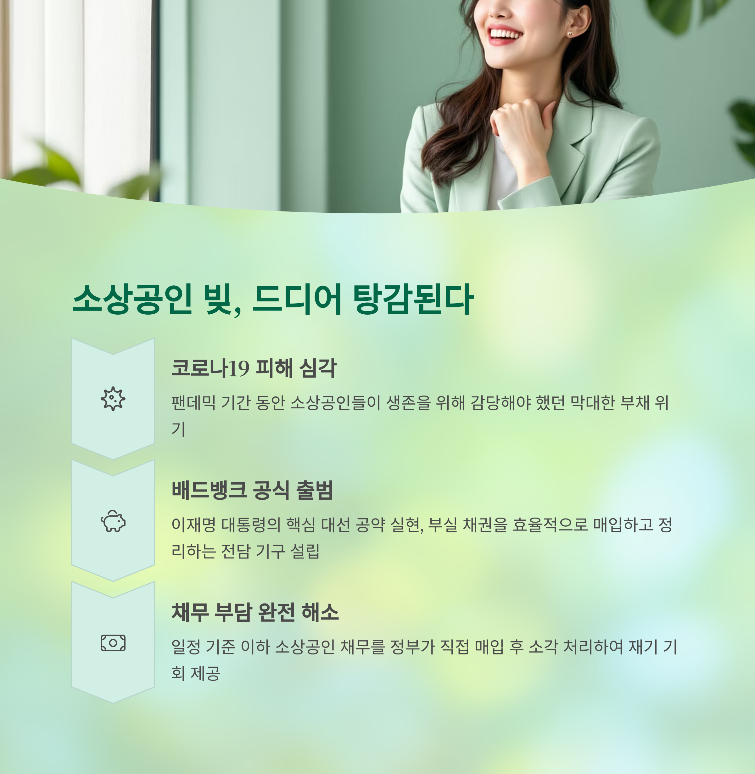 코로나19 이후 어려움을 겪은 소상공인의 채무 탕감 조치가 핵심입니다.