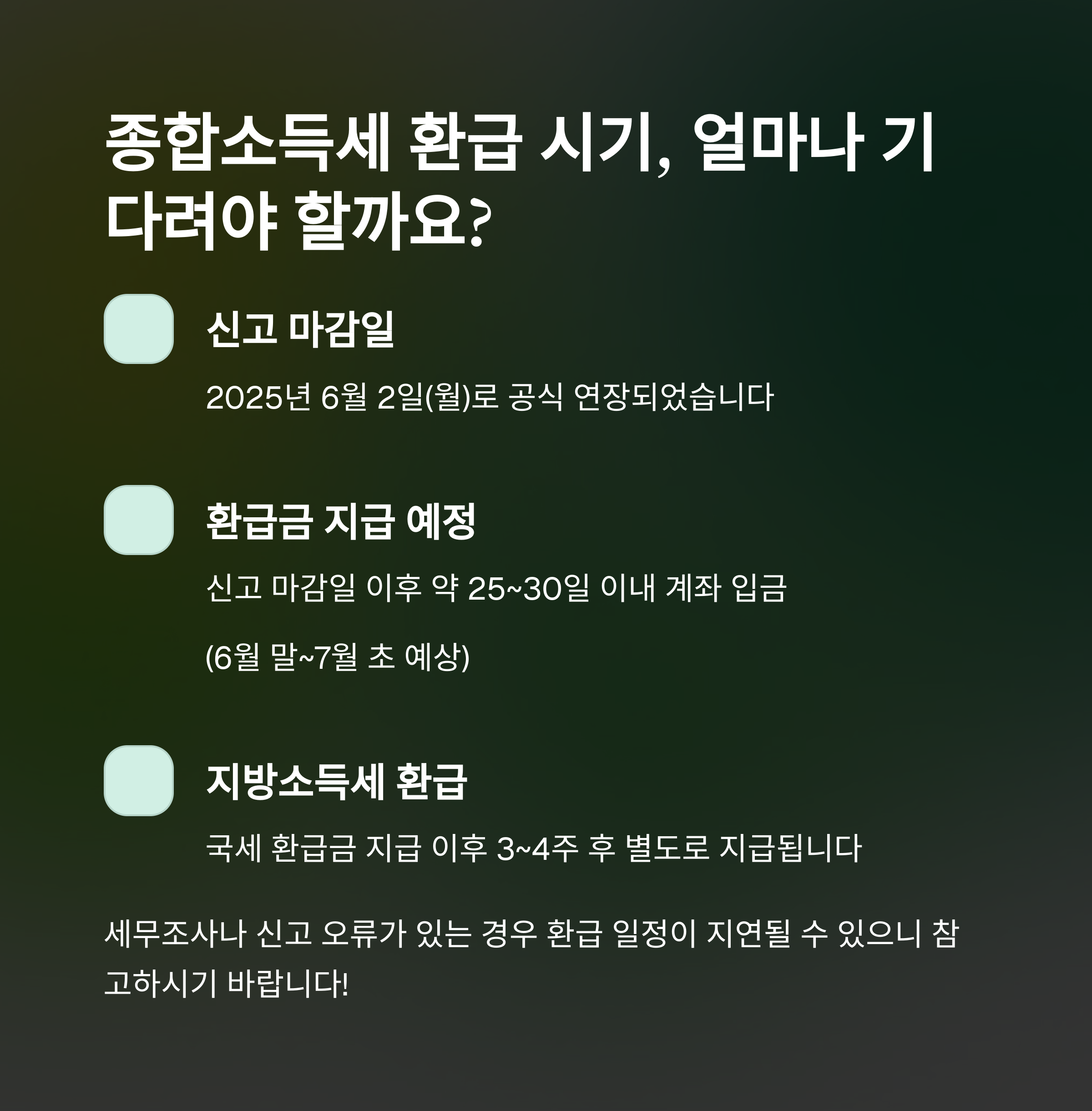 ① 2025년 종합소득세 환급금 지급 일정은?