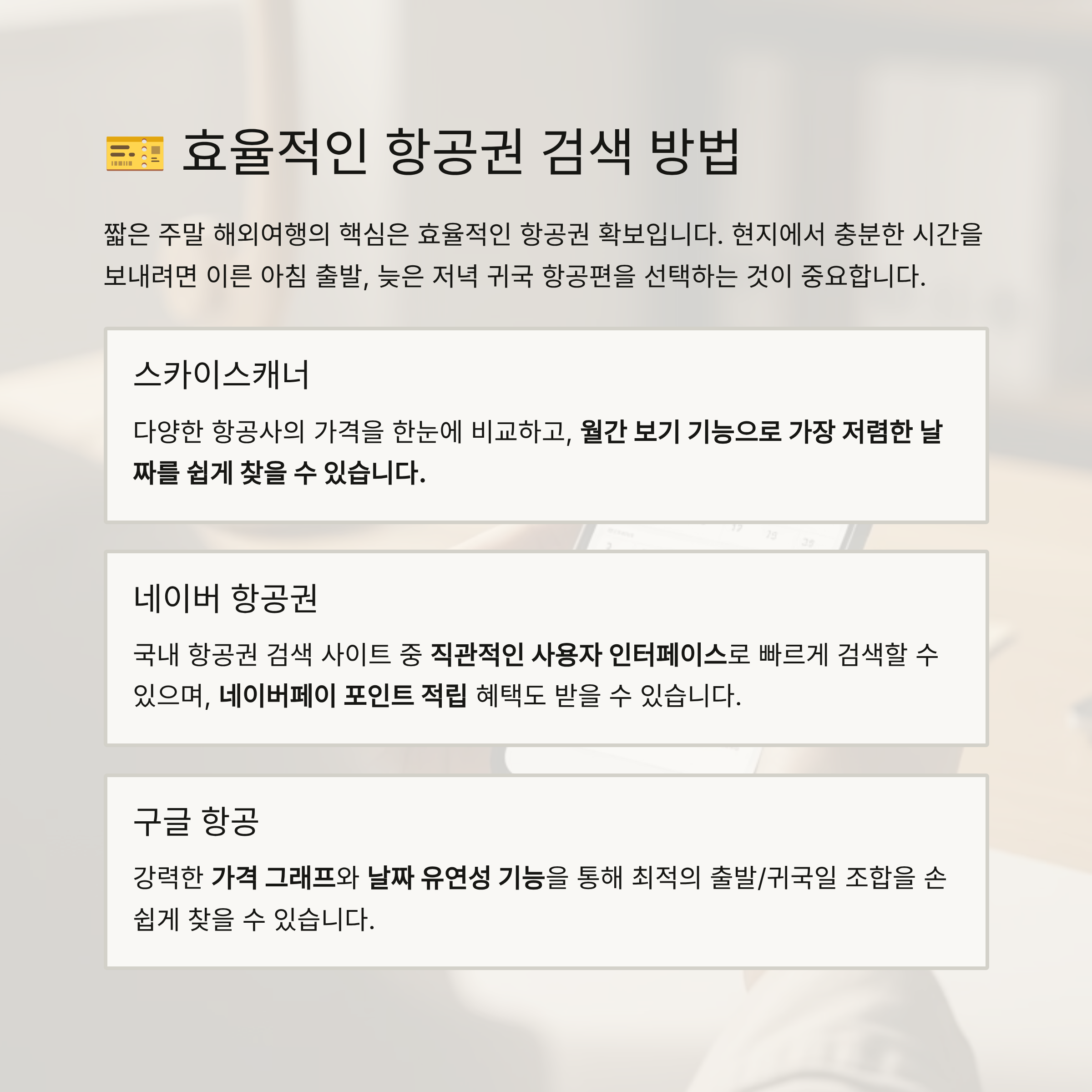 항공권 타이밍과 루트 설계만 잘 해도 여행 퀄리티는 달라집니다.