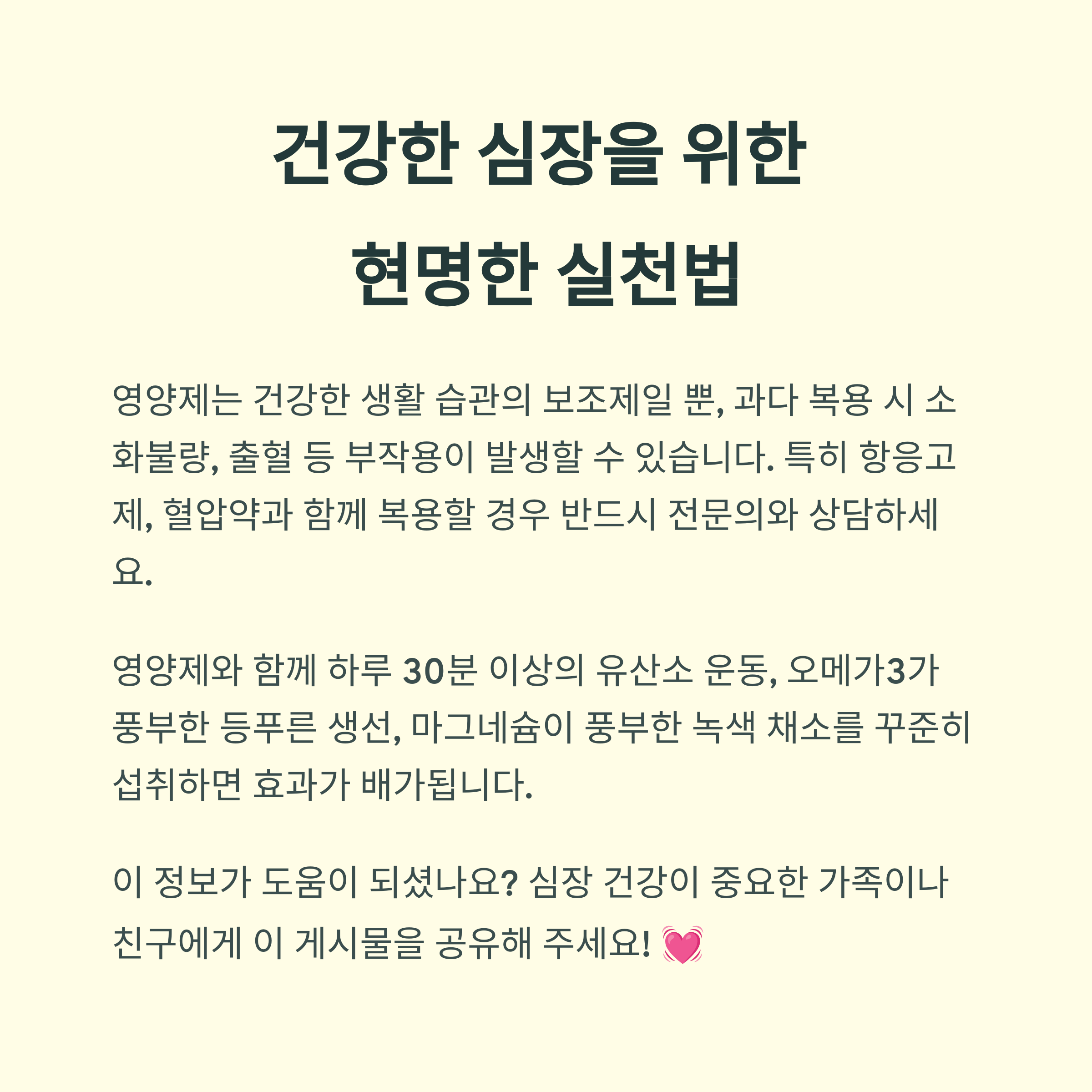 "올바른 섭취가 심장 건강에 확실한 도움을 줍니다."