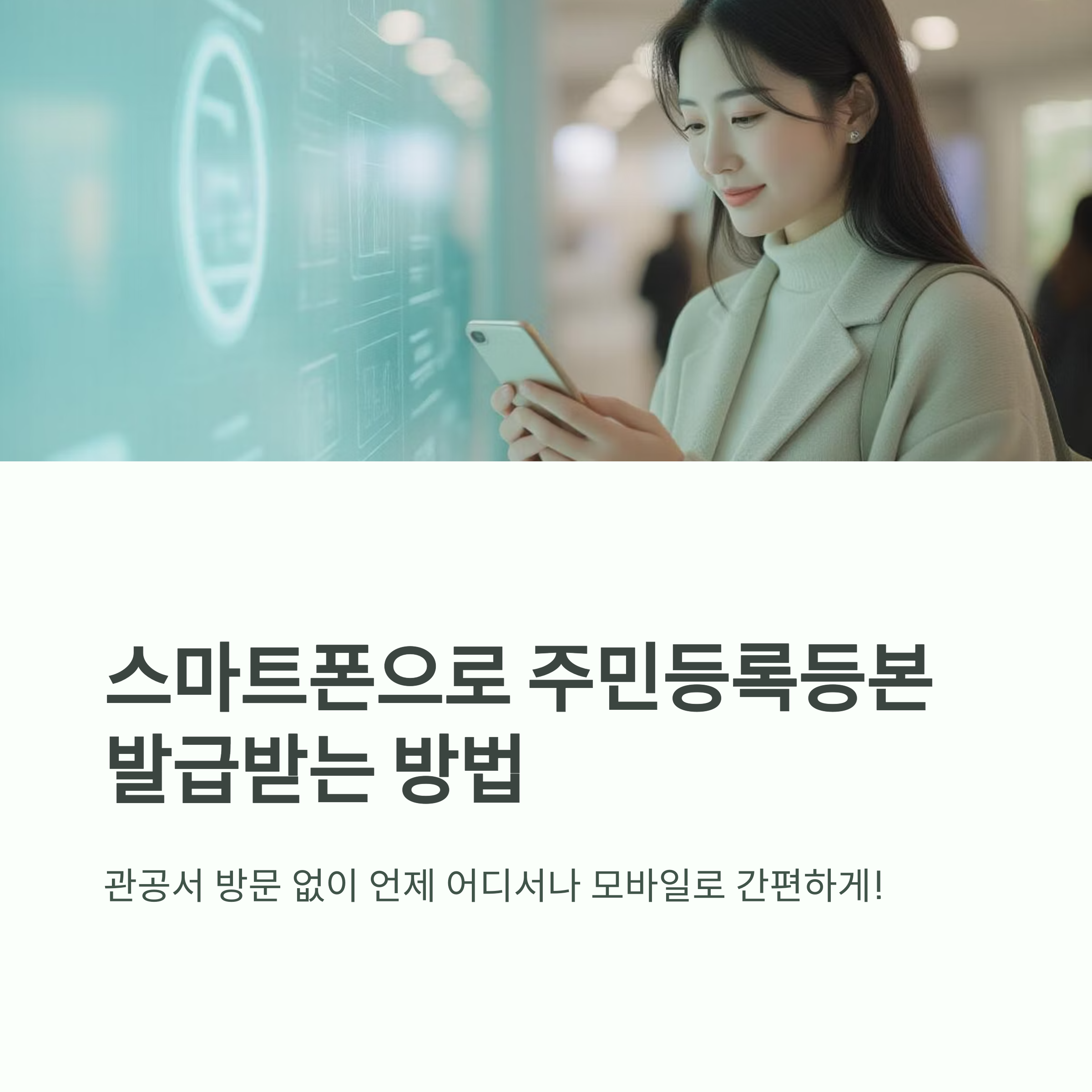 이제는 스마트폰만 있으면 언제 어디서나 모바일 발급이 가능합니다.