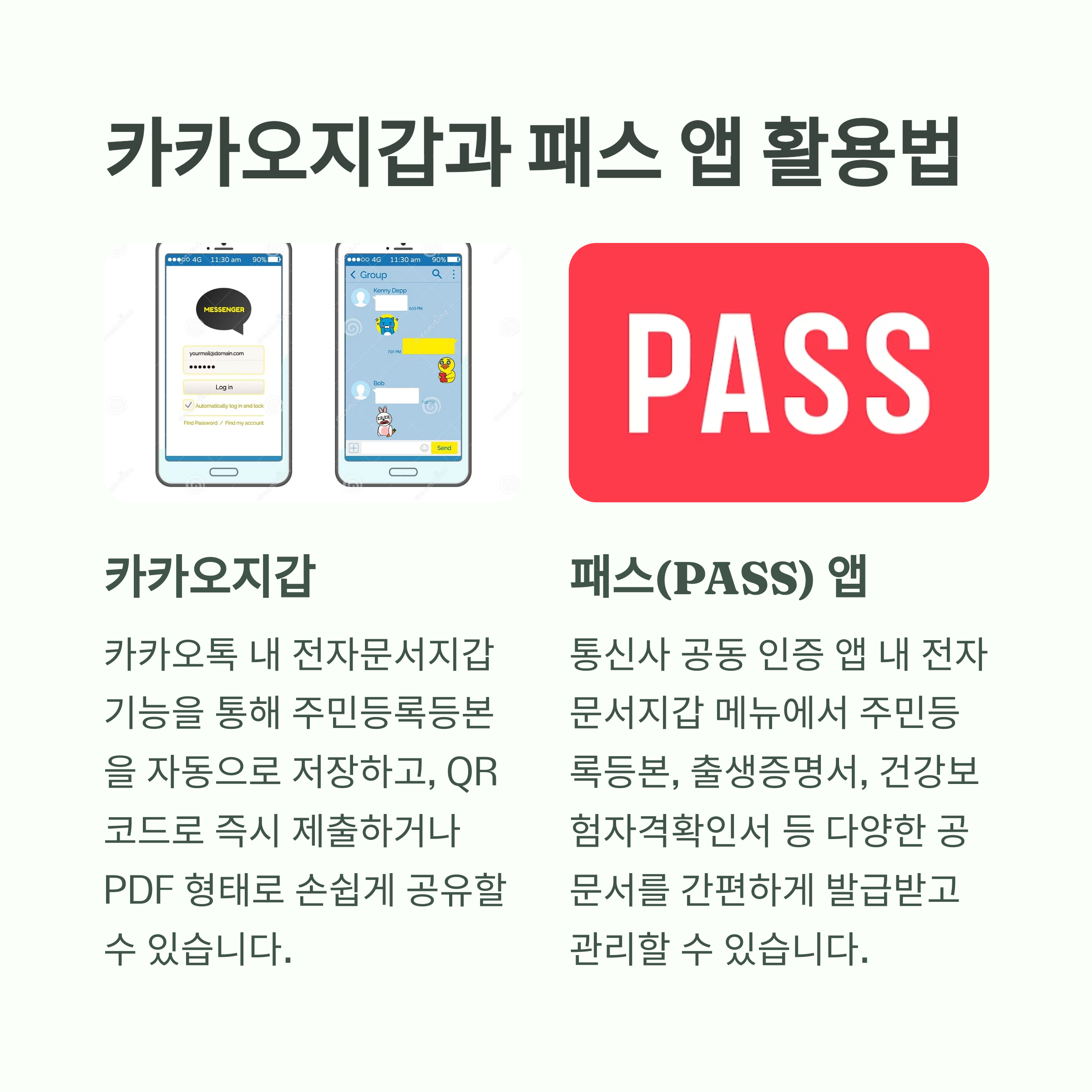 | 모바일 신분증 앱 (행안부) | QR코드 인증 + 지갑 저장 | PASS, KB, 신한 인증 |