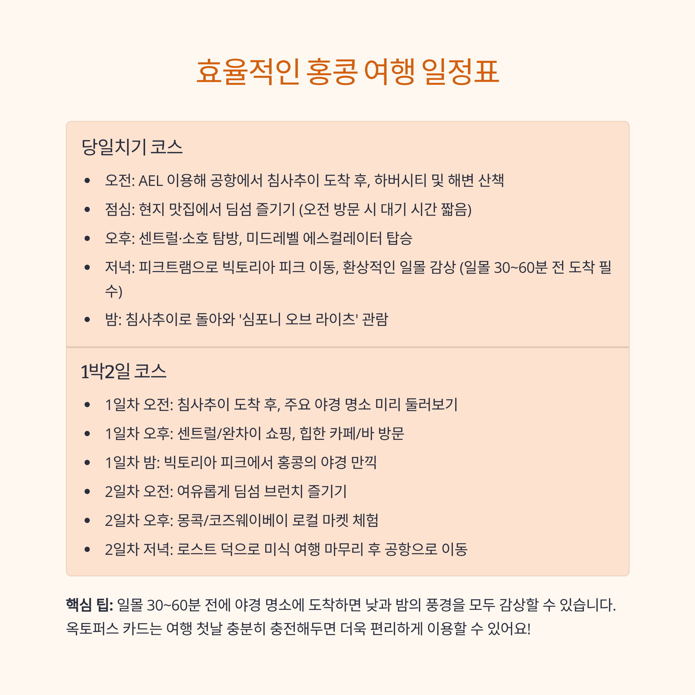 이 글은 홍콩여행을 가볍고 똑똑하게 즐기기 위한 최적 동선·교통·예상 경비·추천 코스를 한 번에 정리한 실전 가이드입니다.