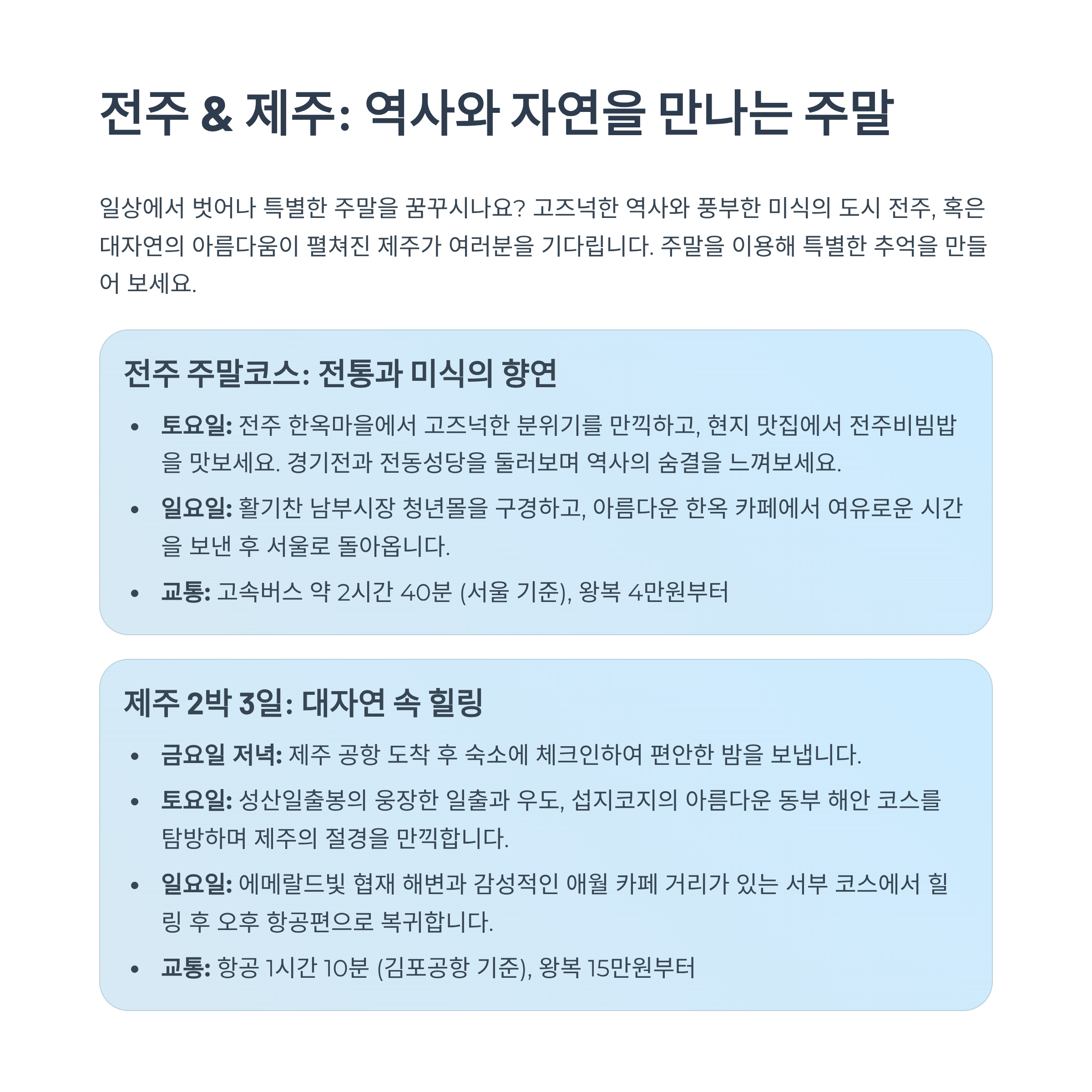주말여행추천,국내여행,춘천여행,강릉주말여행,부산여행,전주한옥마을,제주2박3일,주말여행예산,교통예매,짧은여행,원데이투어