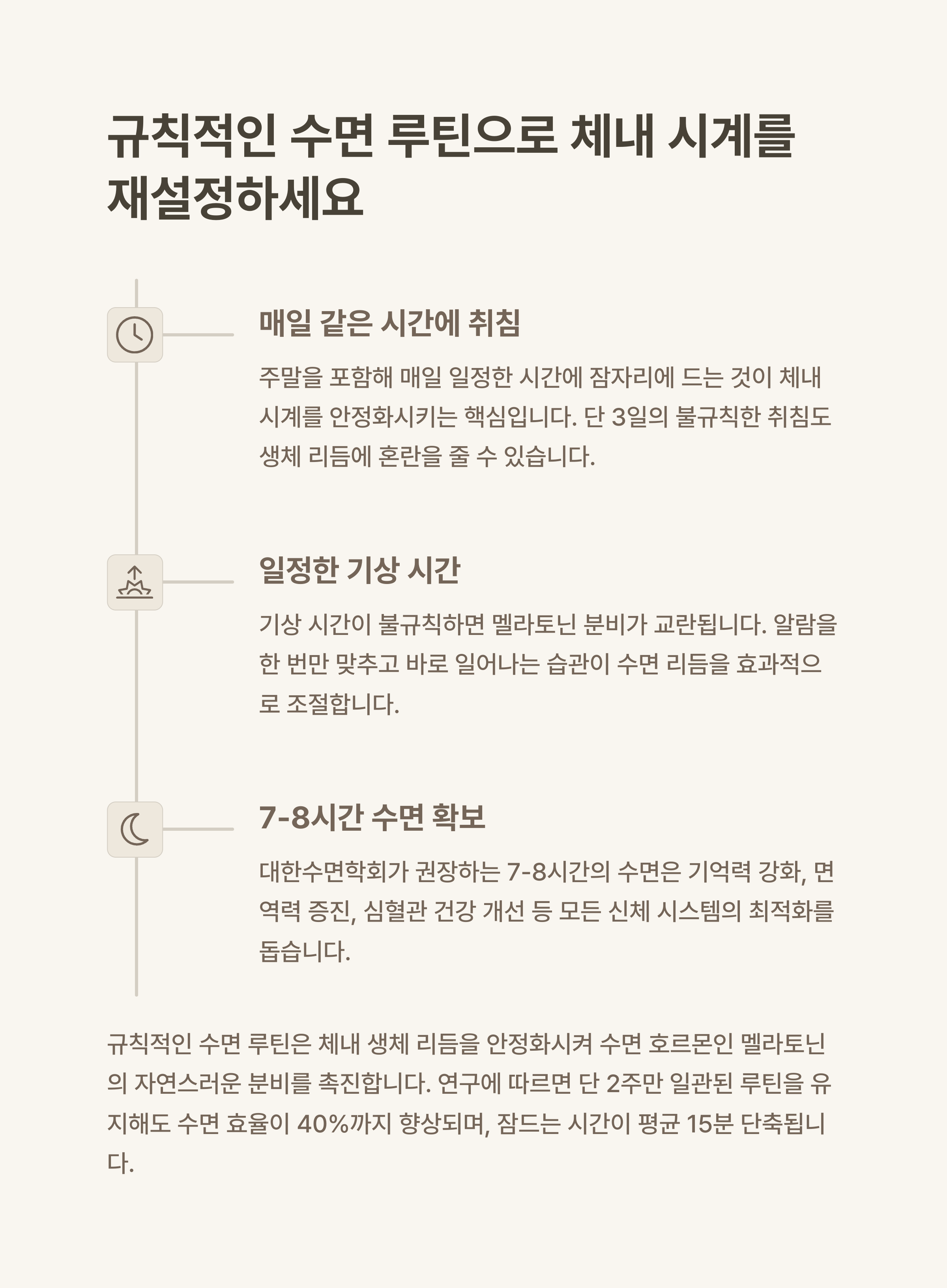 "수면 리듬이 안정되면 몸이 자연스럽게 잠들 준비를 하게 됩니다."