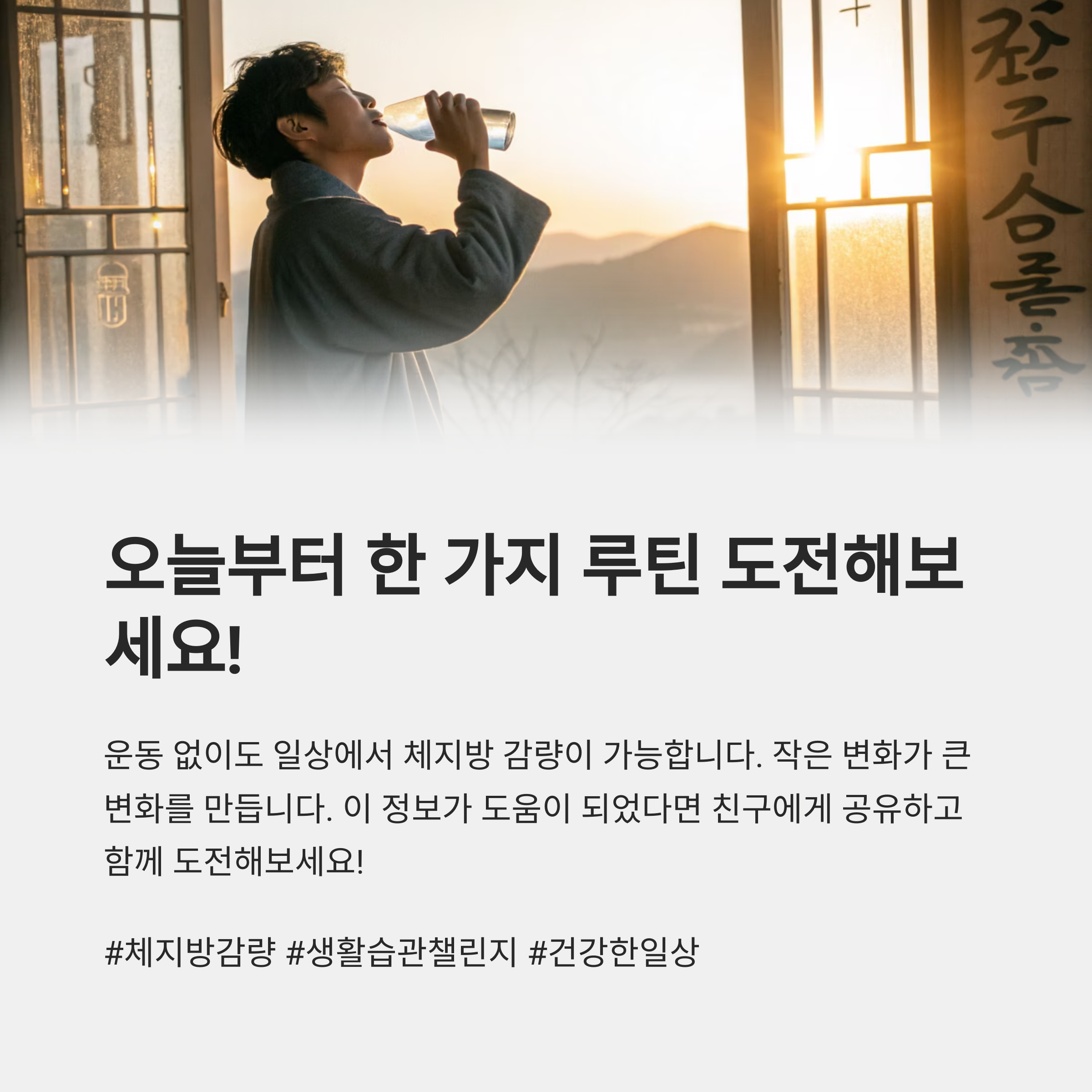 | 주요 키워드 | 체지방줄이는습관, 대사증후군관리, 하루루틴, 비운동루틴, 생활습관다이어트 |