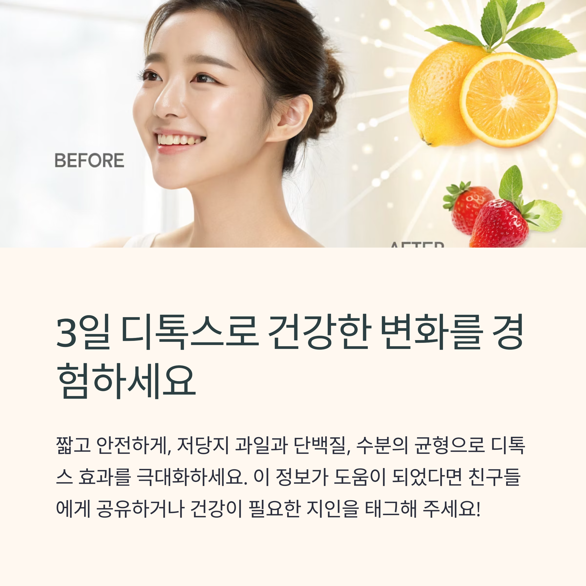 효과 본 조합이나 힘들었던 점, 추천하는 과일이 있다면 댓글로 함께 나눠주세요! 다양한 사례가 디톡스를 시작하는 이들에게 큰 도움이 됩니다.
