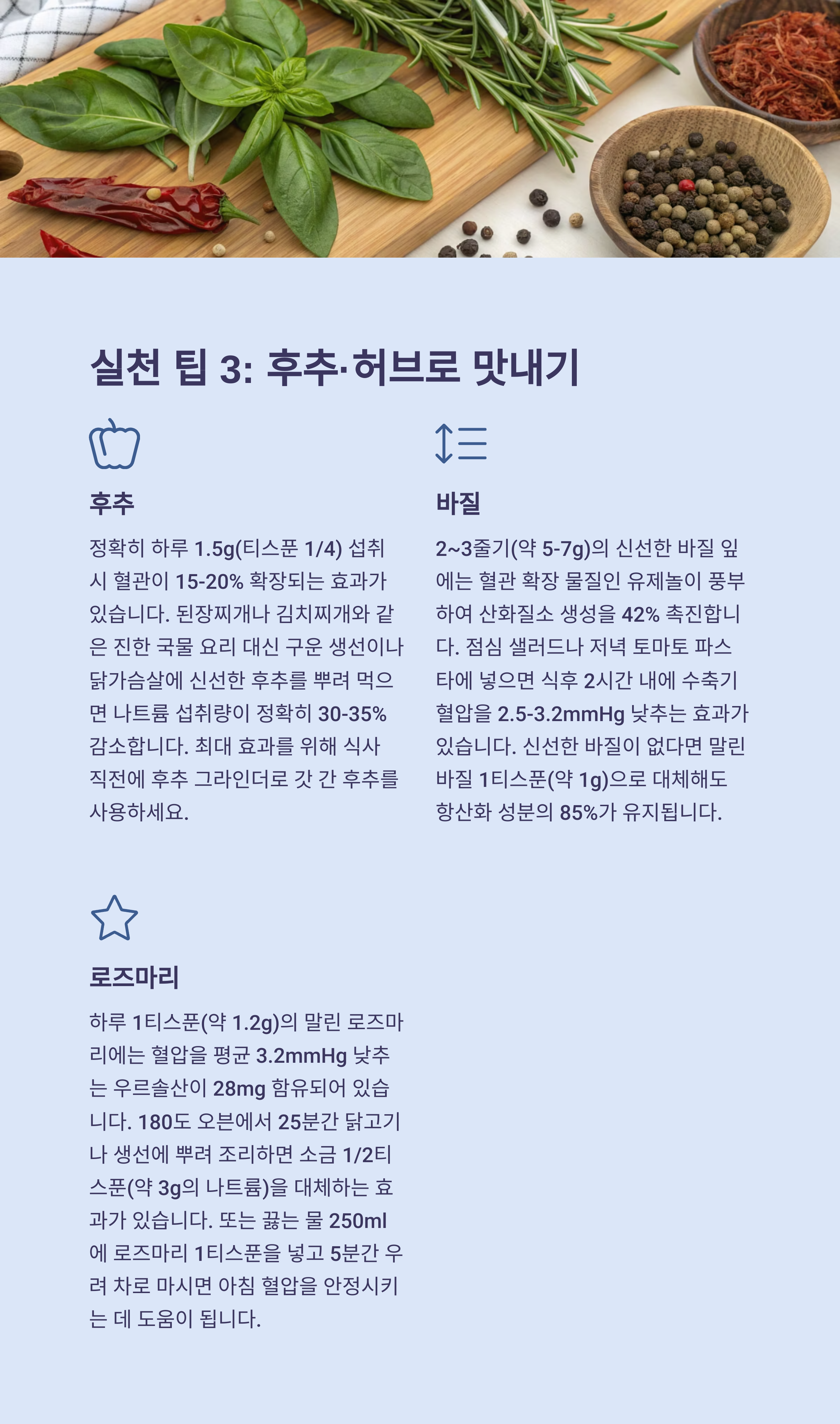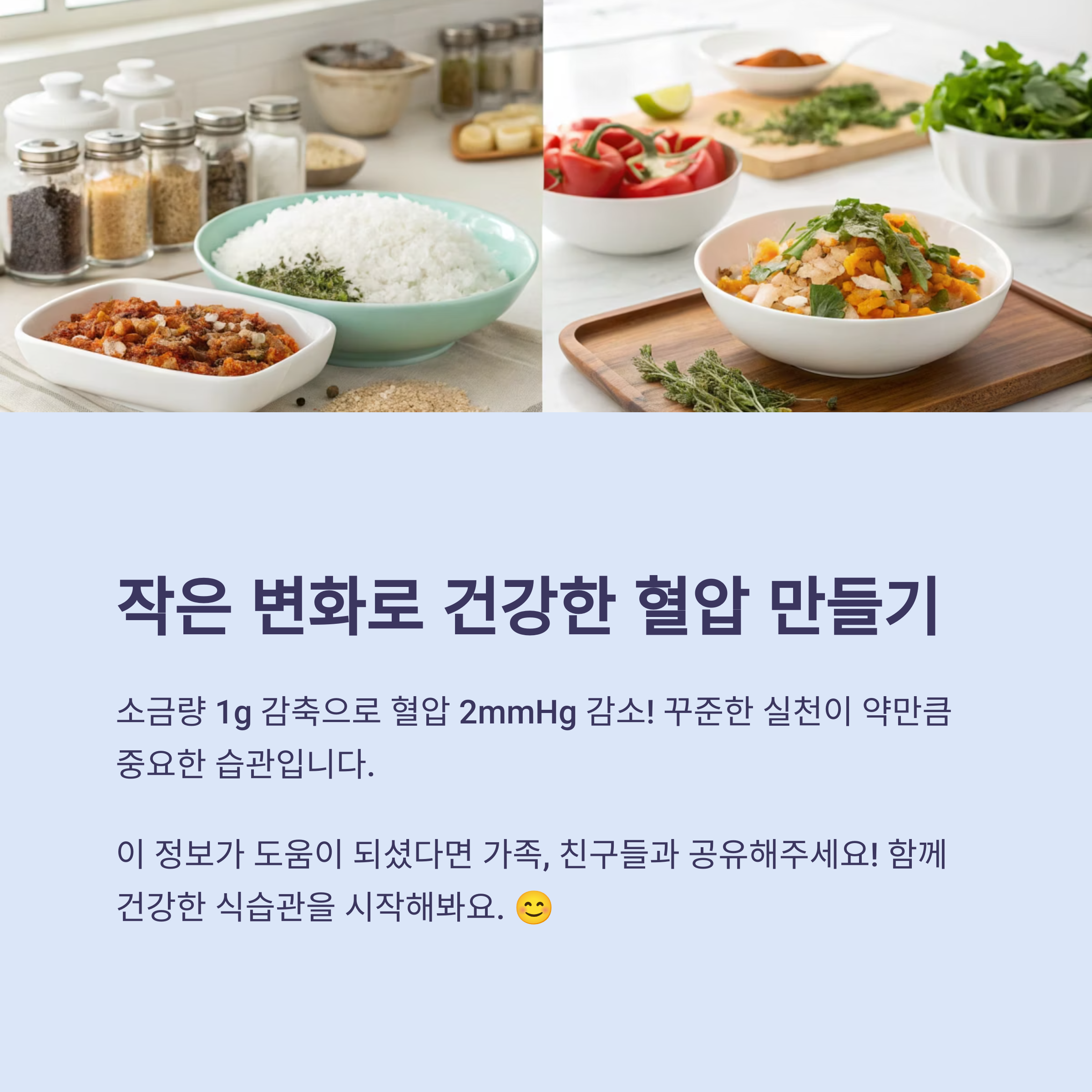 | 콘텐츠 목적 | 고혈압 예방/관리 위한 식단 지침 제공 + 일상 적용 팁 |
