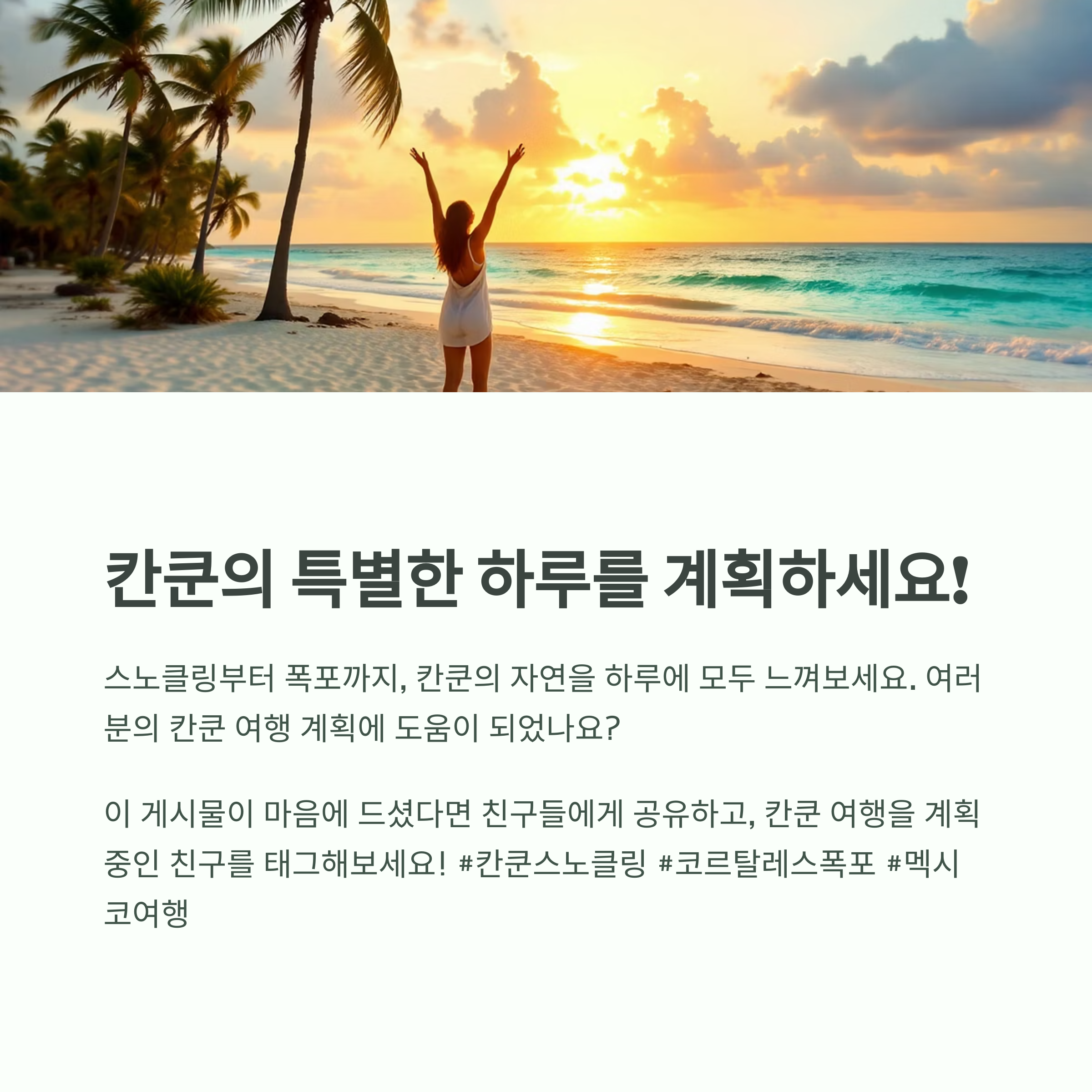 멕시코 칸쿤에서 스노클링과 폭포 체험을 하루에? 어떻게 하면 좋을까요?