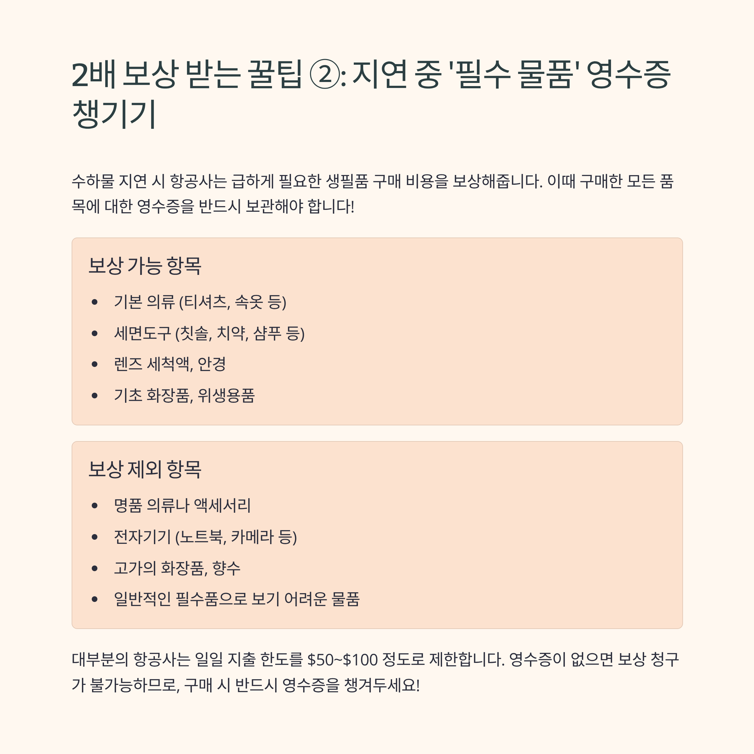 2배 보상 받는 꿀팁 ② : 지연 중 ‘필수 물품’ 영수증 챙기기