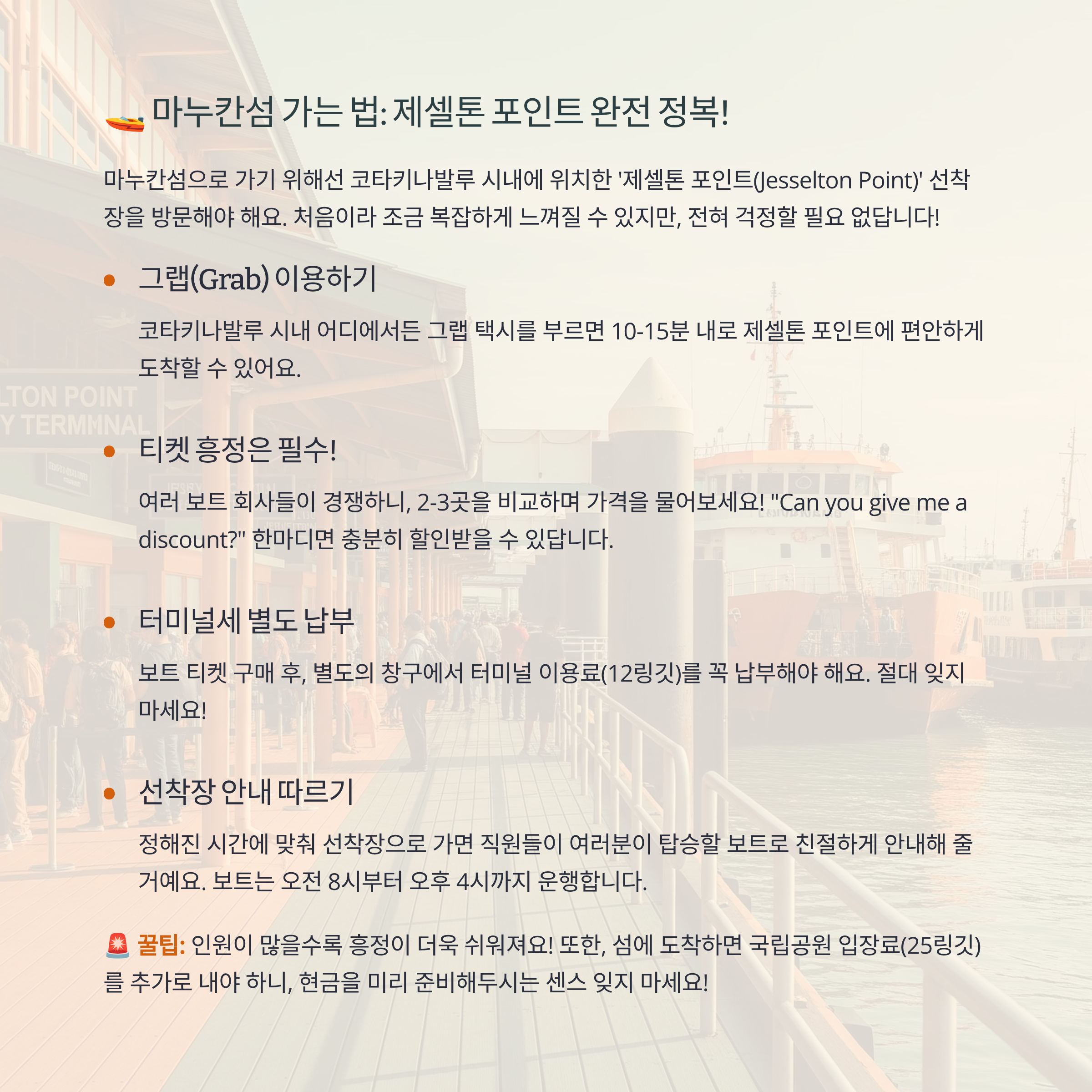 🚤 마누칸섬 가는 법: 제셀톤 포인트 완전 정복!