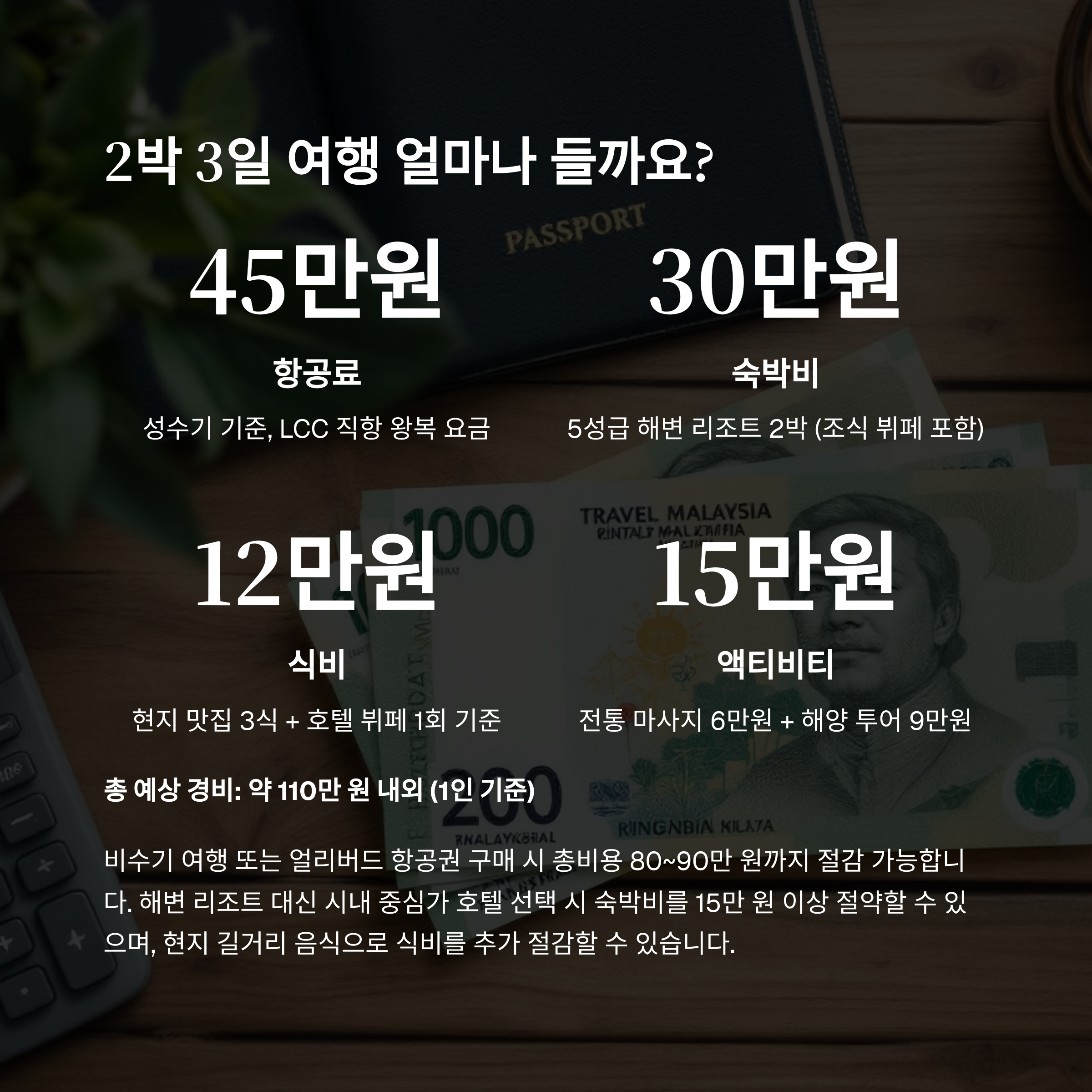 | 항공료 | 약 45만원 | 성수기 기준, LCC 왕복 |