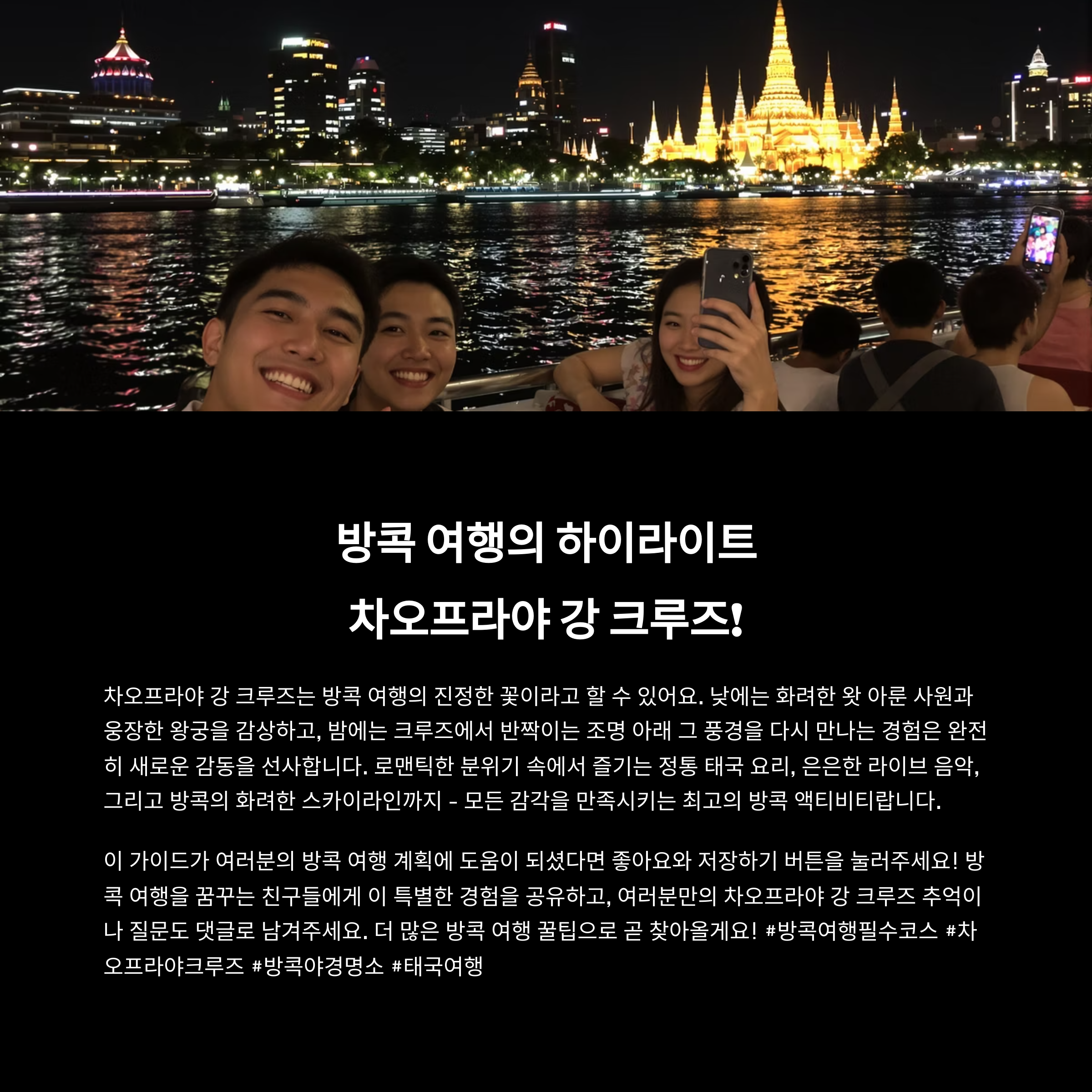 #방콕크루즈체험 #차오프라야크루즈 #방콕야경투어 #노을감상포인트 #방콕디너크루즈 #ICONSIAM선착장