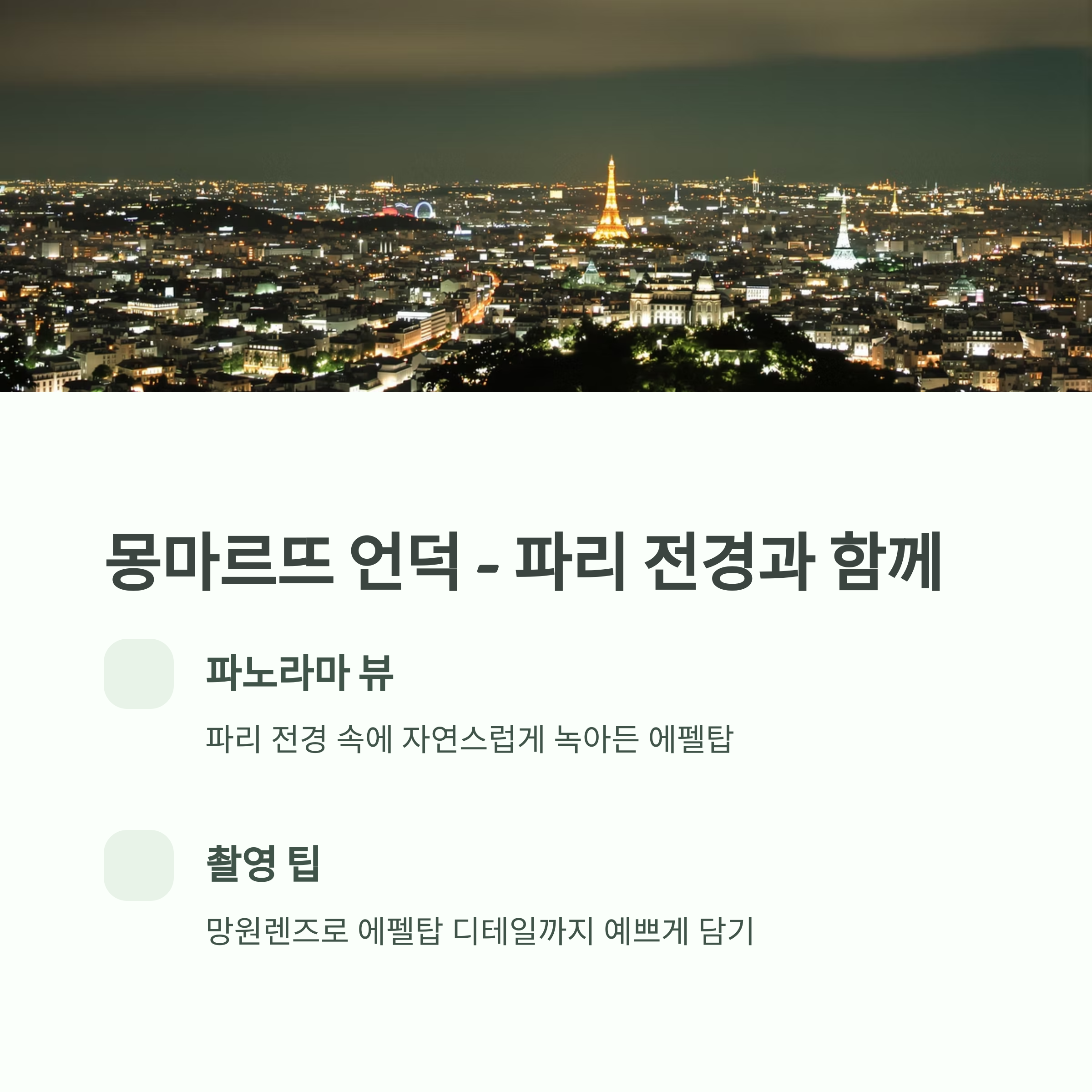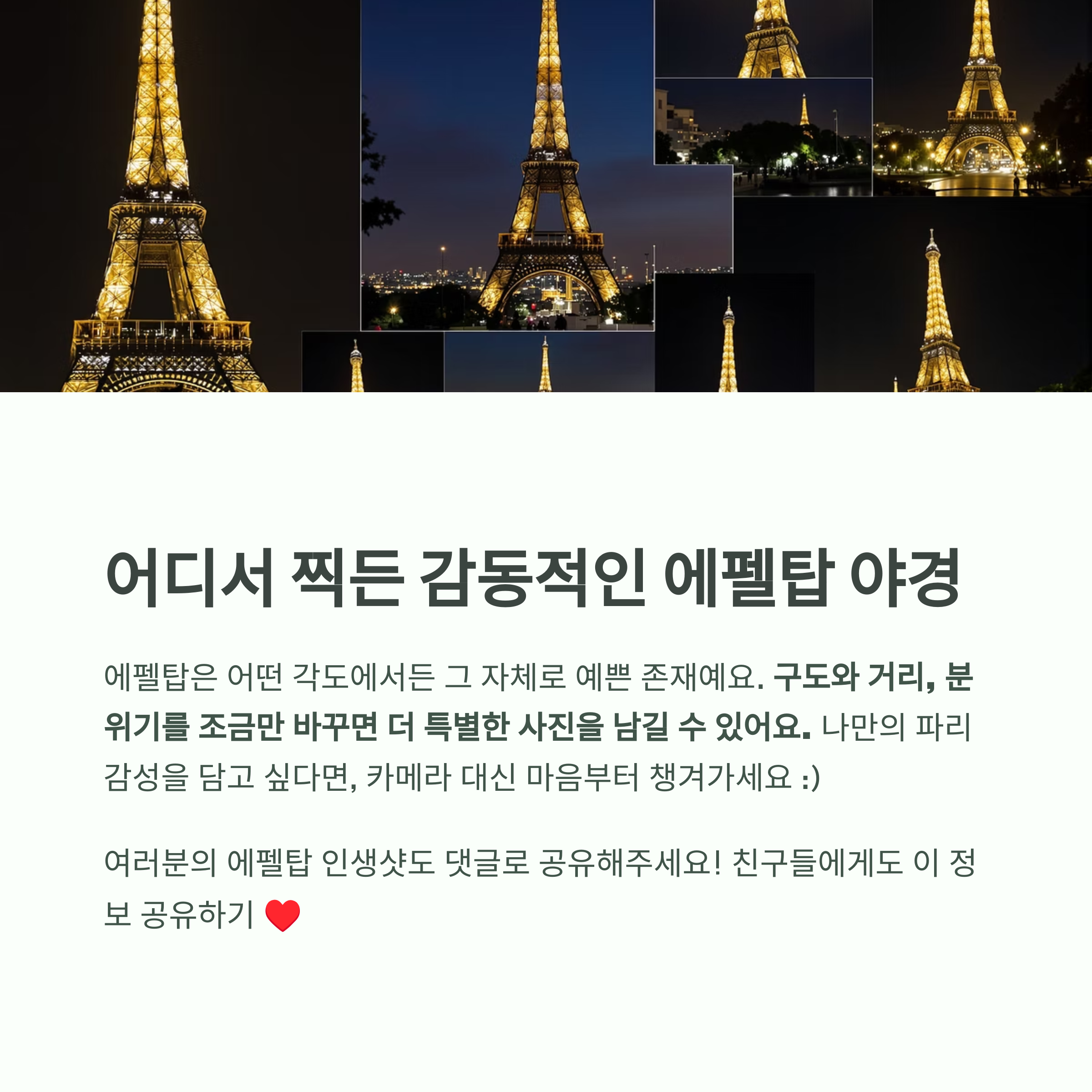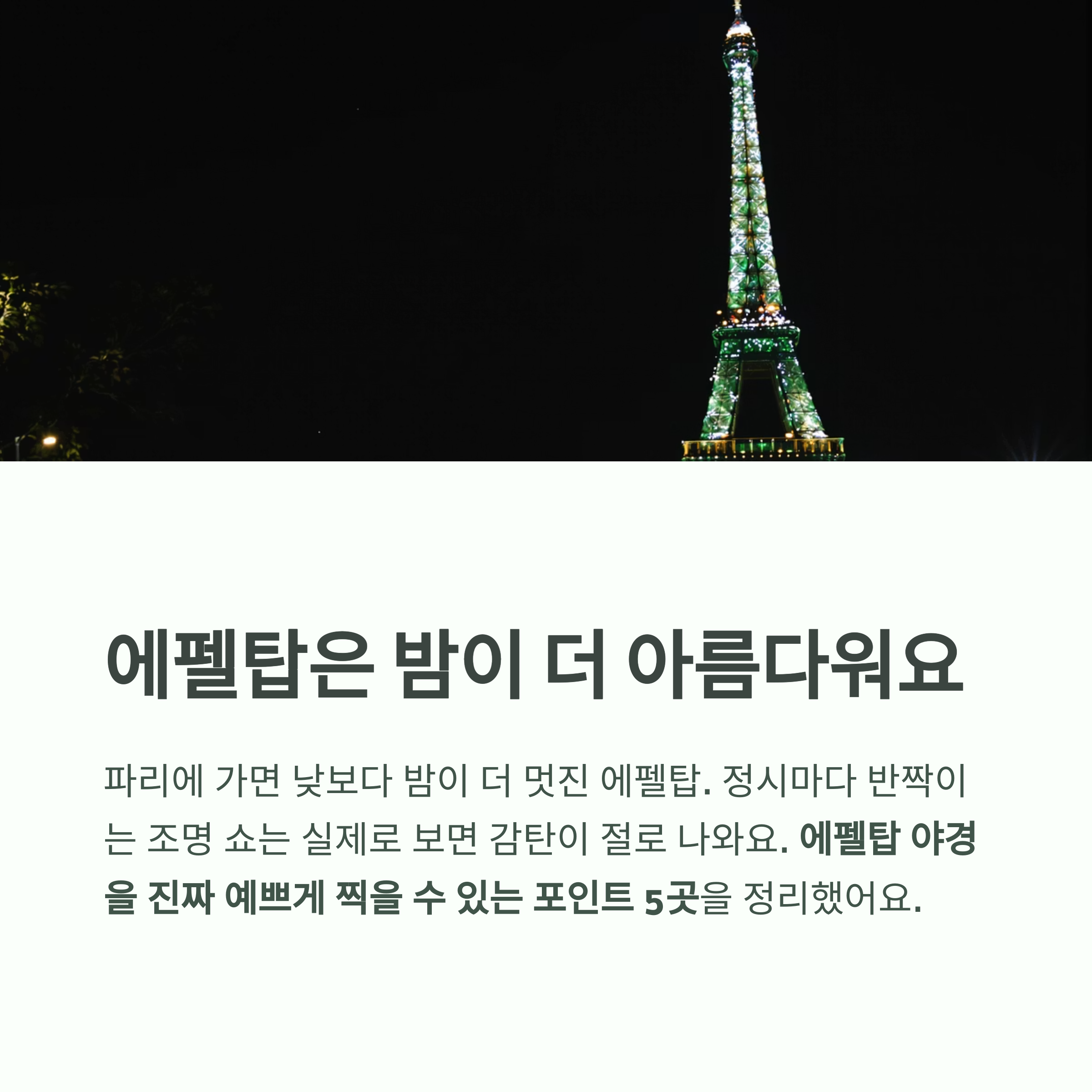 이번엔 에펠탑 야경을 진짜 예쁘게 찍을 수 있는 포인트 5곳을 정리해봤어요.