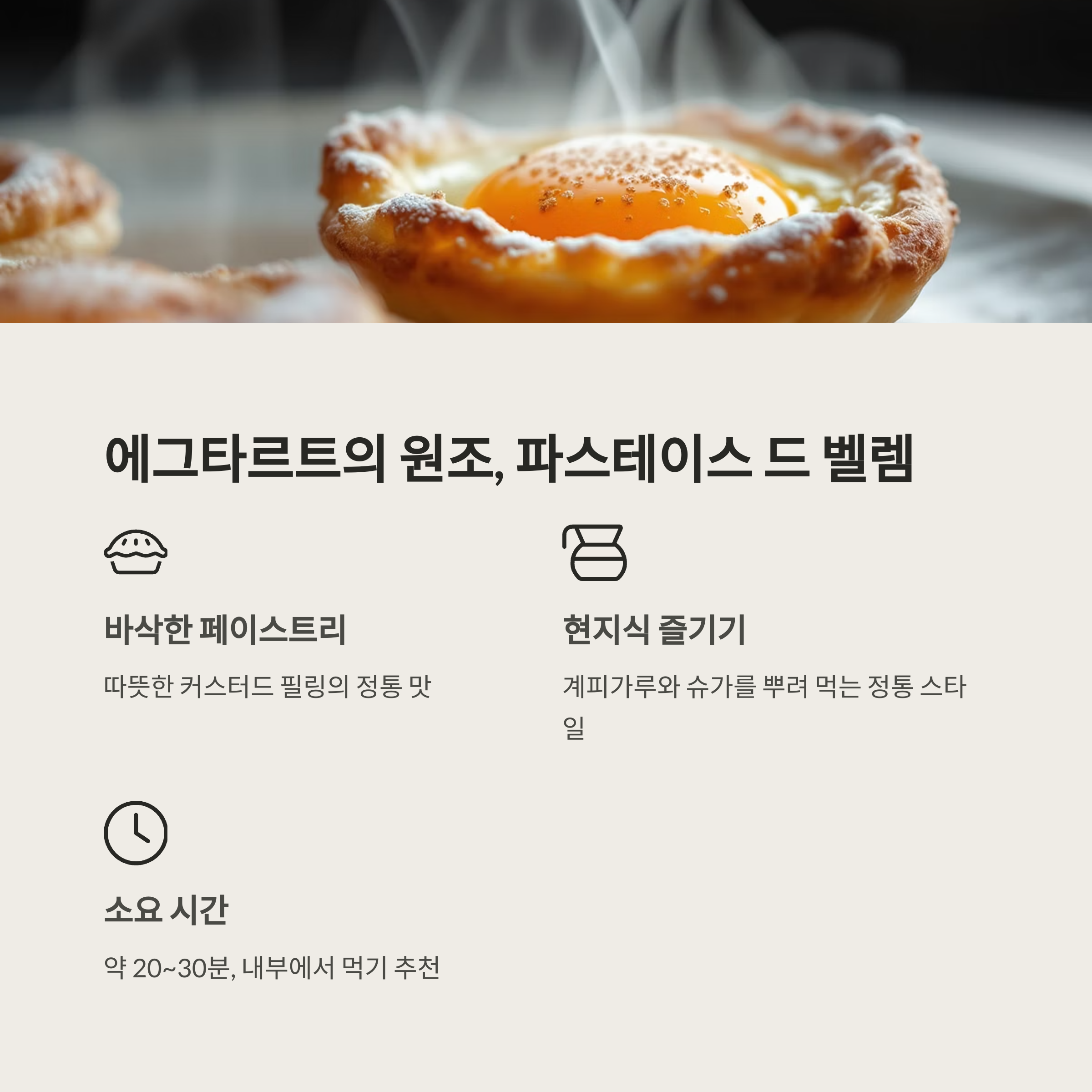 바삭한 페이스트리와 따뜻한 커스터드 필링이 특징이며,