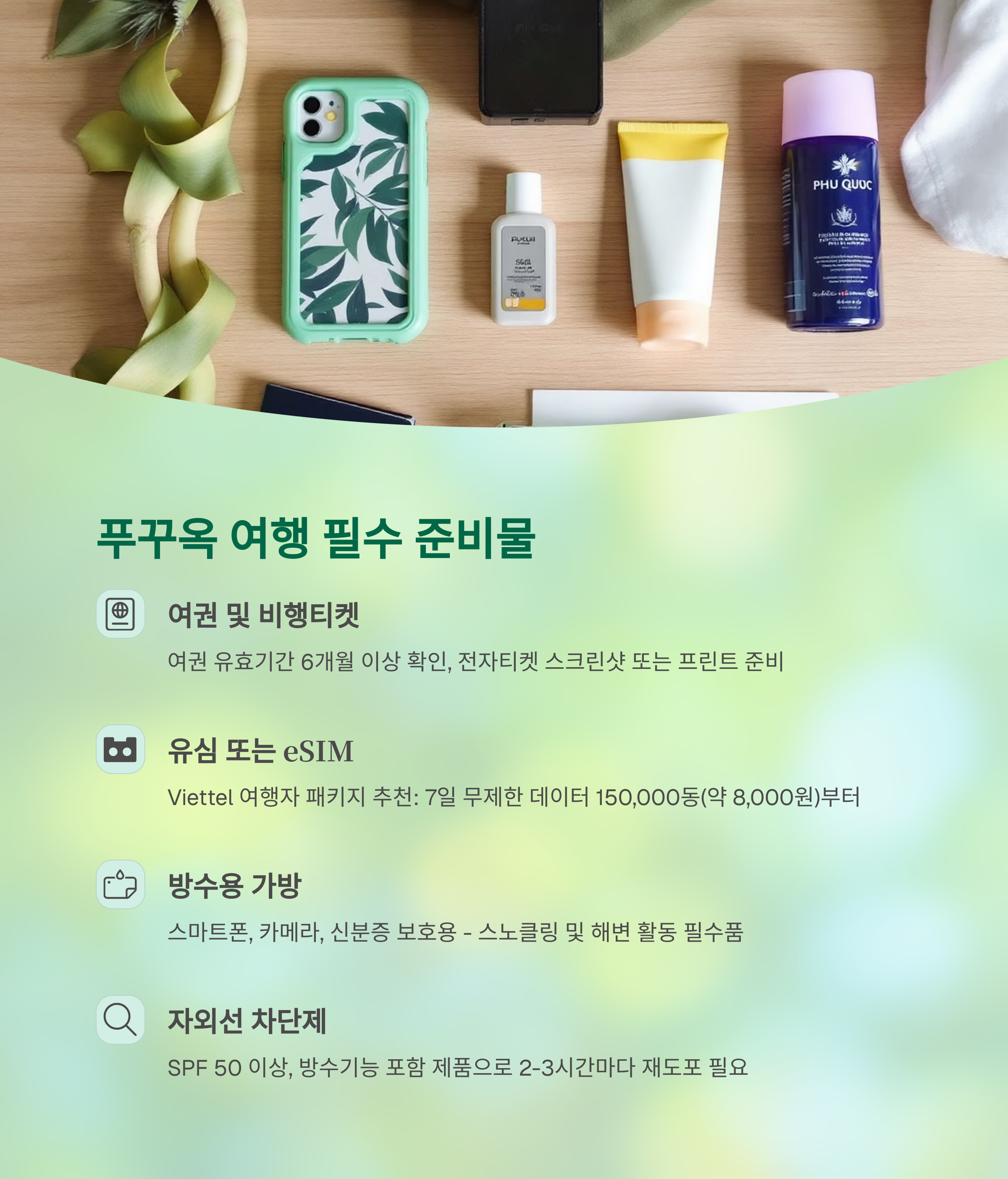 아래는 푸꾸옥 여행 전 필수 준비물입니다.