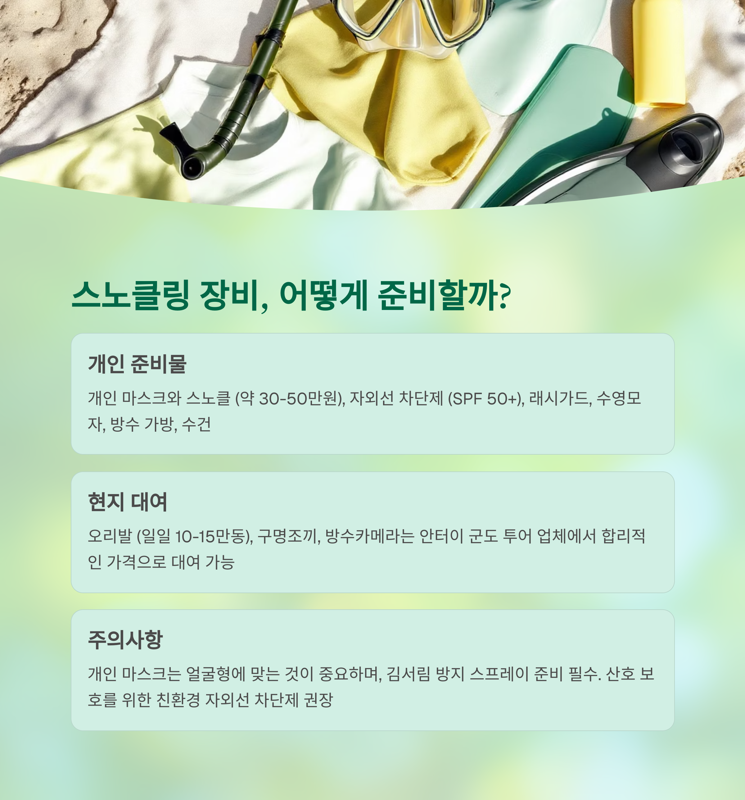 스노클링 장비는 준비해 가야 할까?