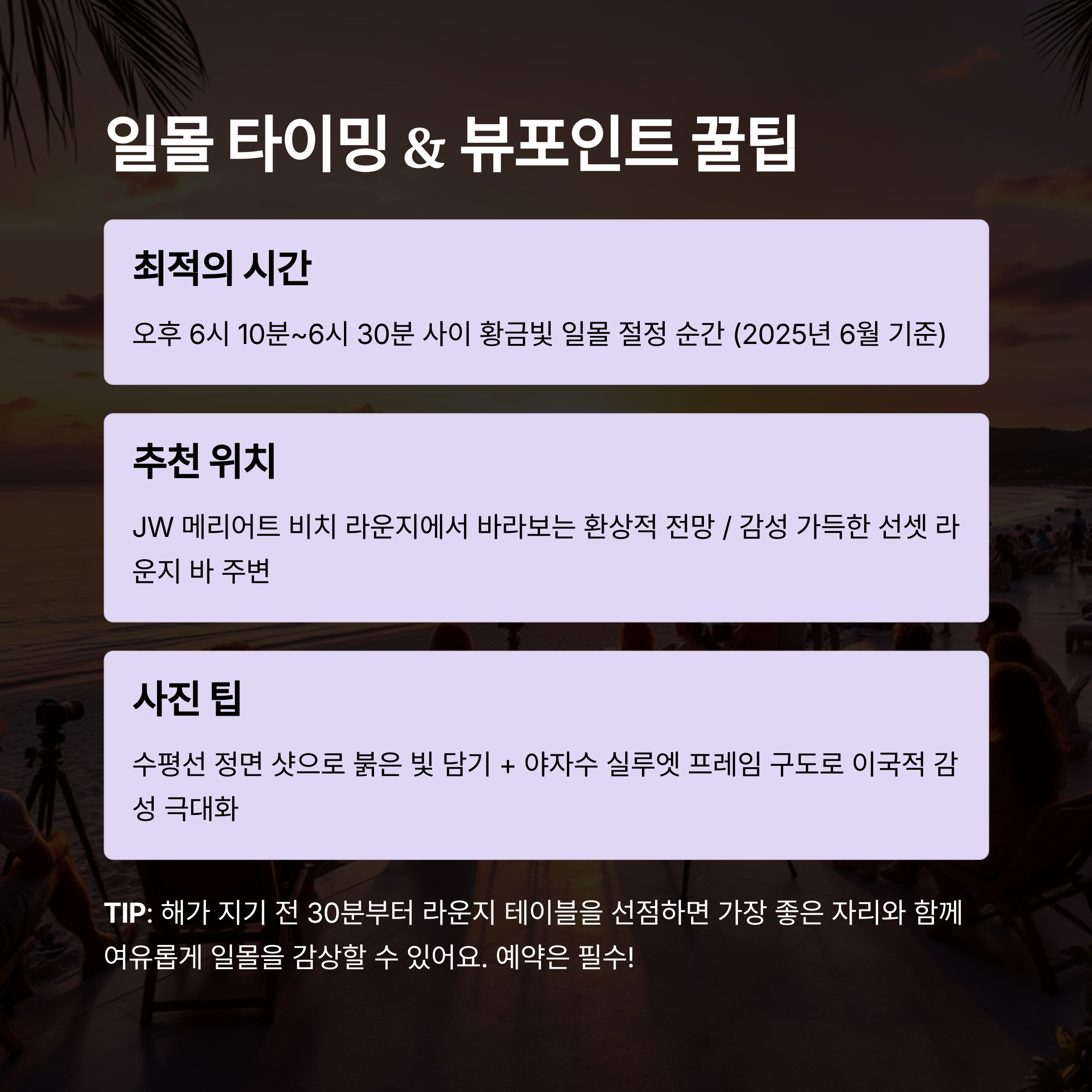 추천 위치 | JW 메리어트 비치 앞 / 선셋 라운지 바 주변 |