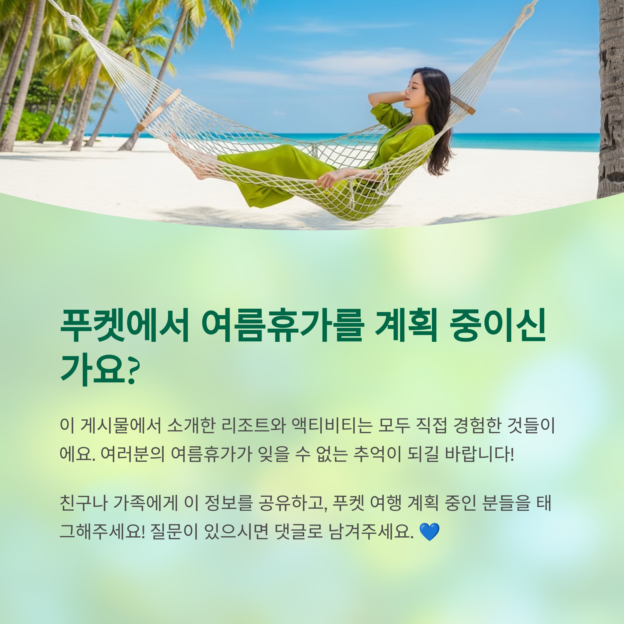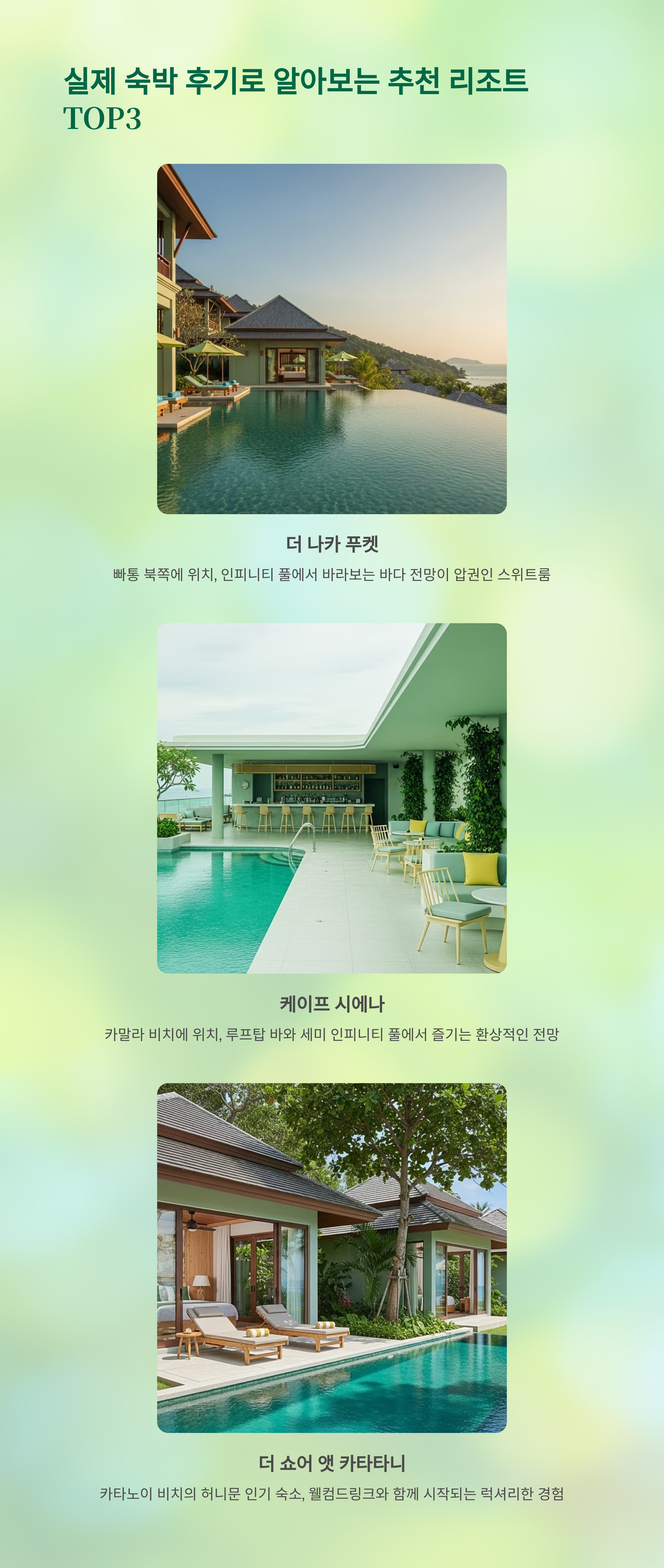 푸켓은 여름휴가 시즌에 가장 인기 있는 동남아 여행지 중 하나예요. 푸른 바다와 고급 리조트, 짜릿한 액티비티까지 한 번에 즐길 수 있어서 휴식과 재미를 모두 챙기기에 딱이죠. 이번 글에서는 푸켓의 추천 리조트와 액티비티 후기까지 꼼꼼히 소개해드릴게요.