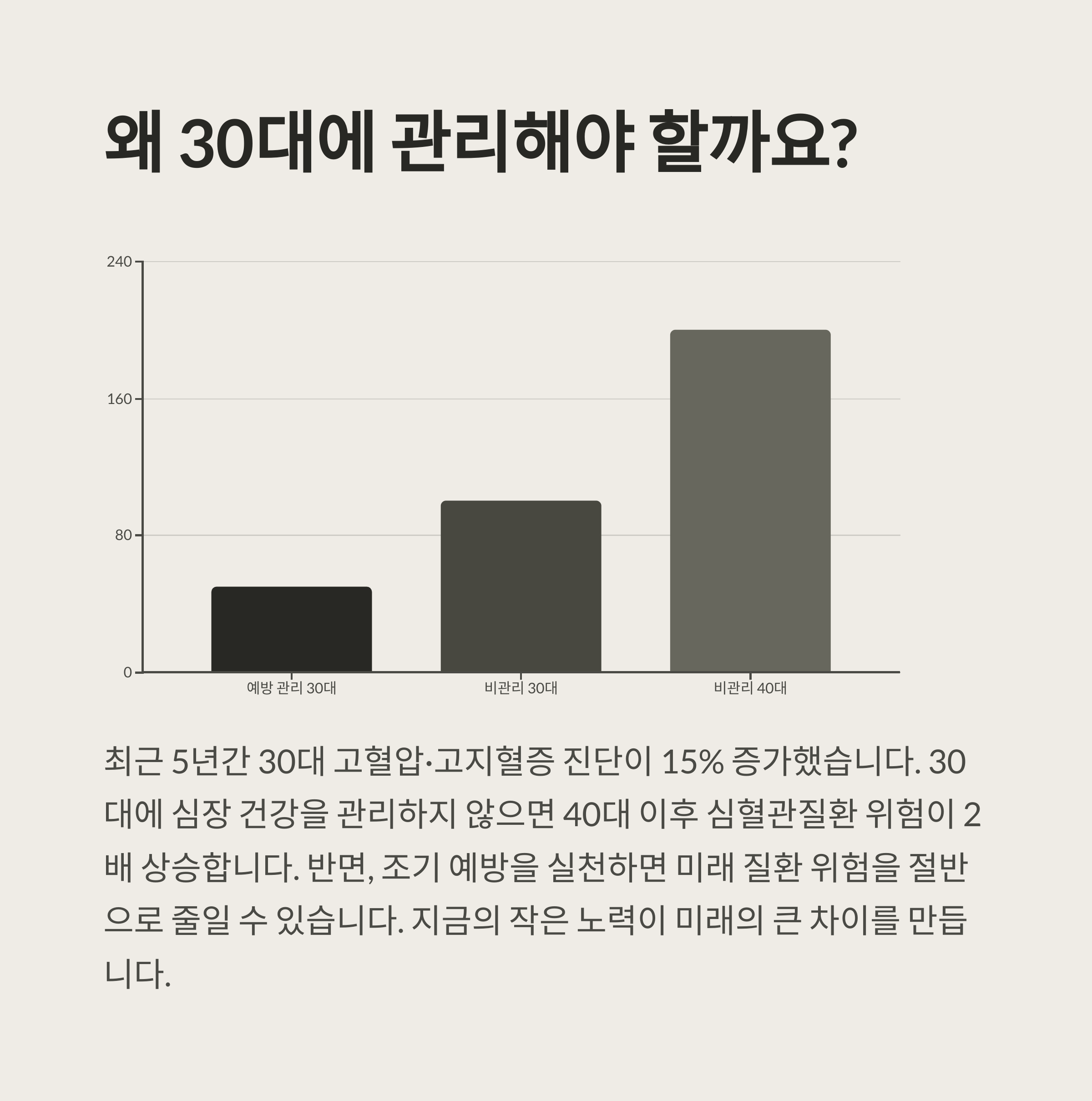 30대부터 관리하지 않으면 40~50대에 문제가 터질 수 있습니다.