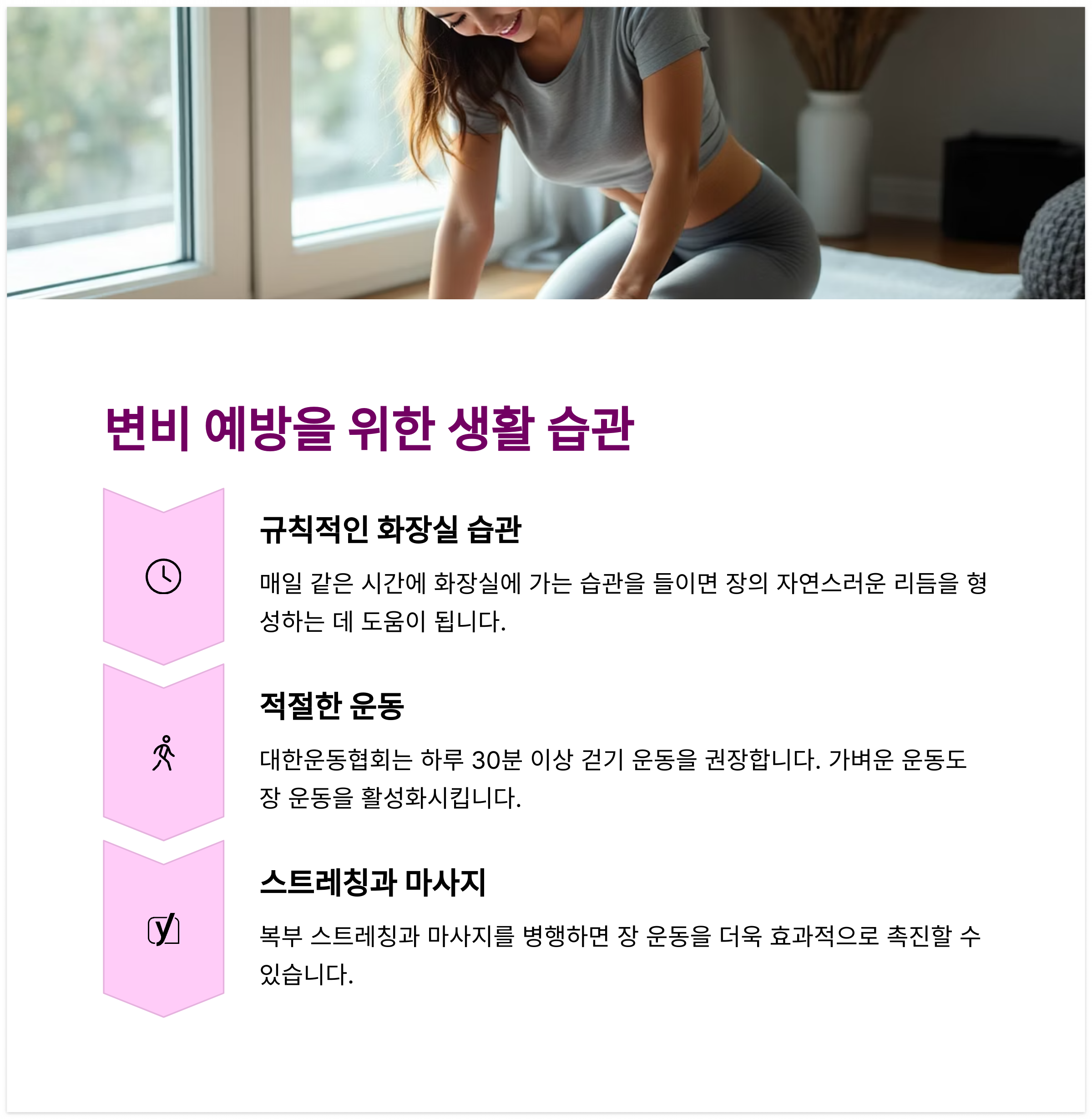 "좋은 습관이 변비를 예방하는 가장 강력한 무기입니다."🌟