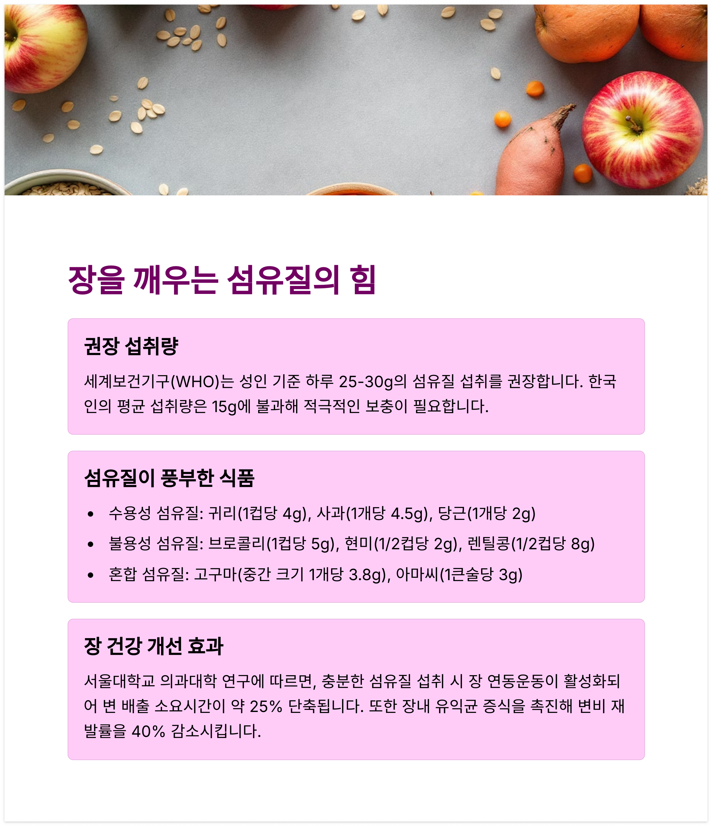 "간단하지만 꾸준히 지키면 변비 해소에 큰 도움이 됩니다."