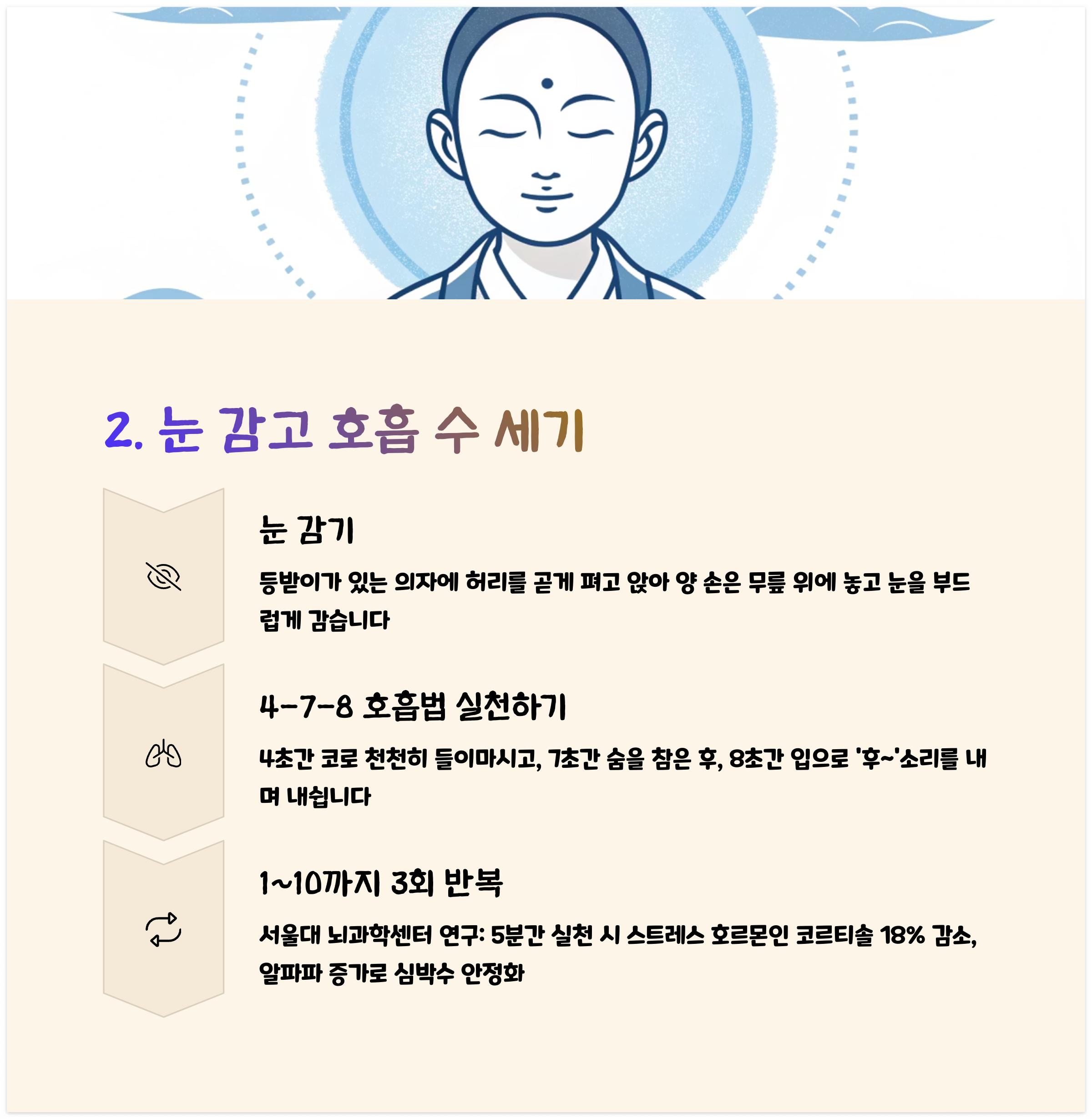 | 기대 효과 | 스트레스 완화, 수면 질 향상, 감정 조절력 강화, 뇌 기능 회복 |