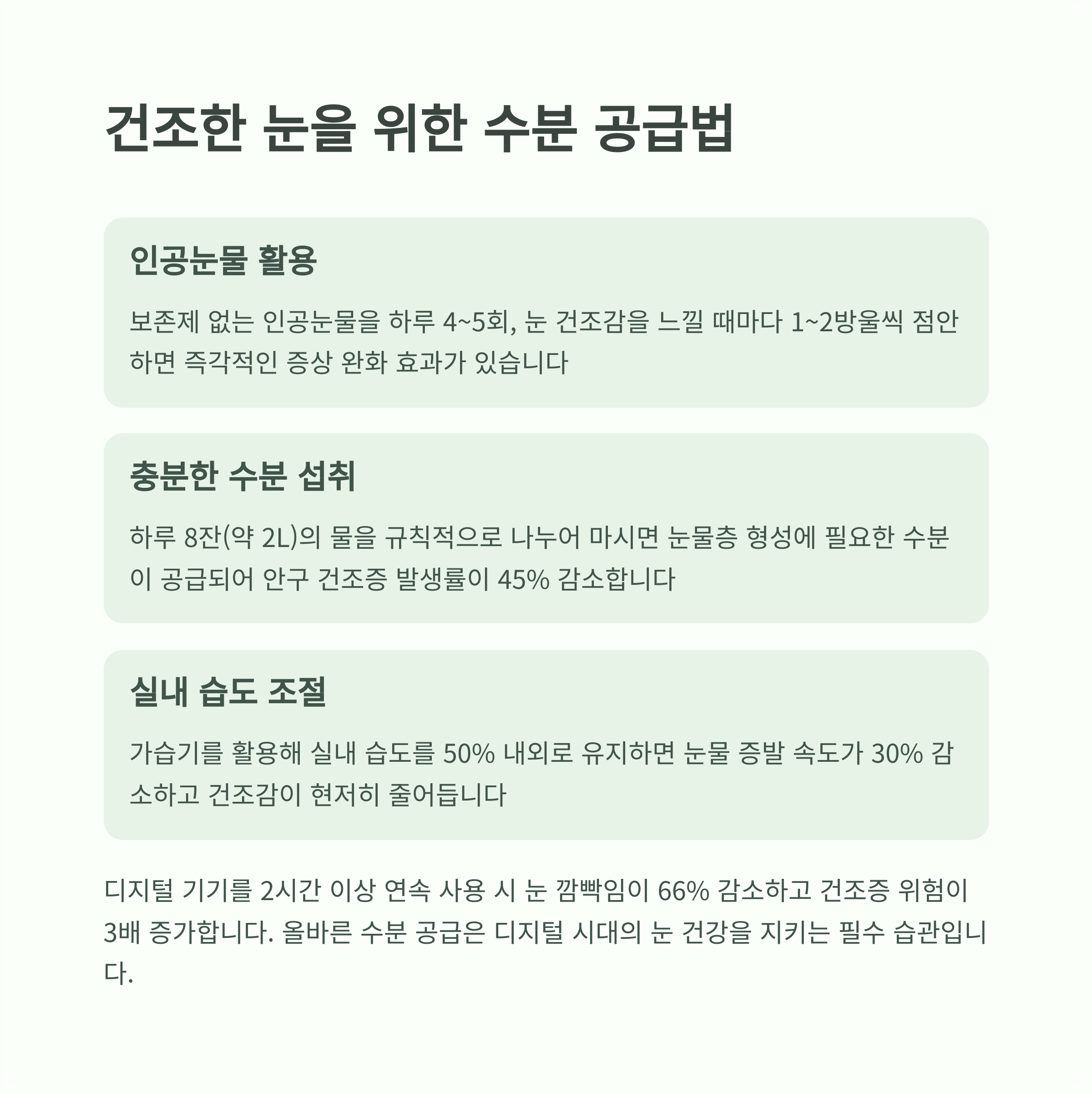 "무방부제 인공눈물을 사용해 눈을 촉촉하게 유지하세요."
