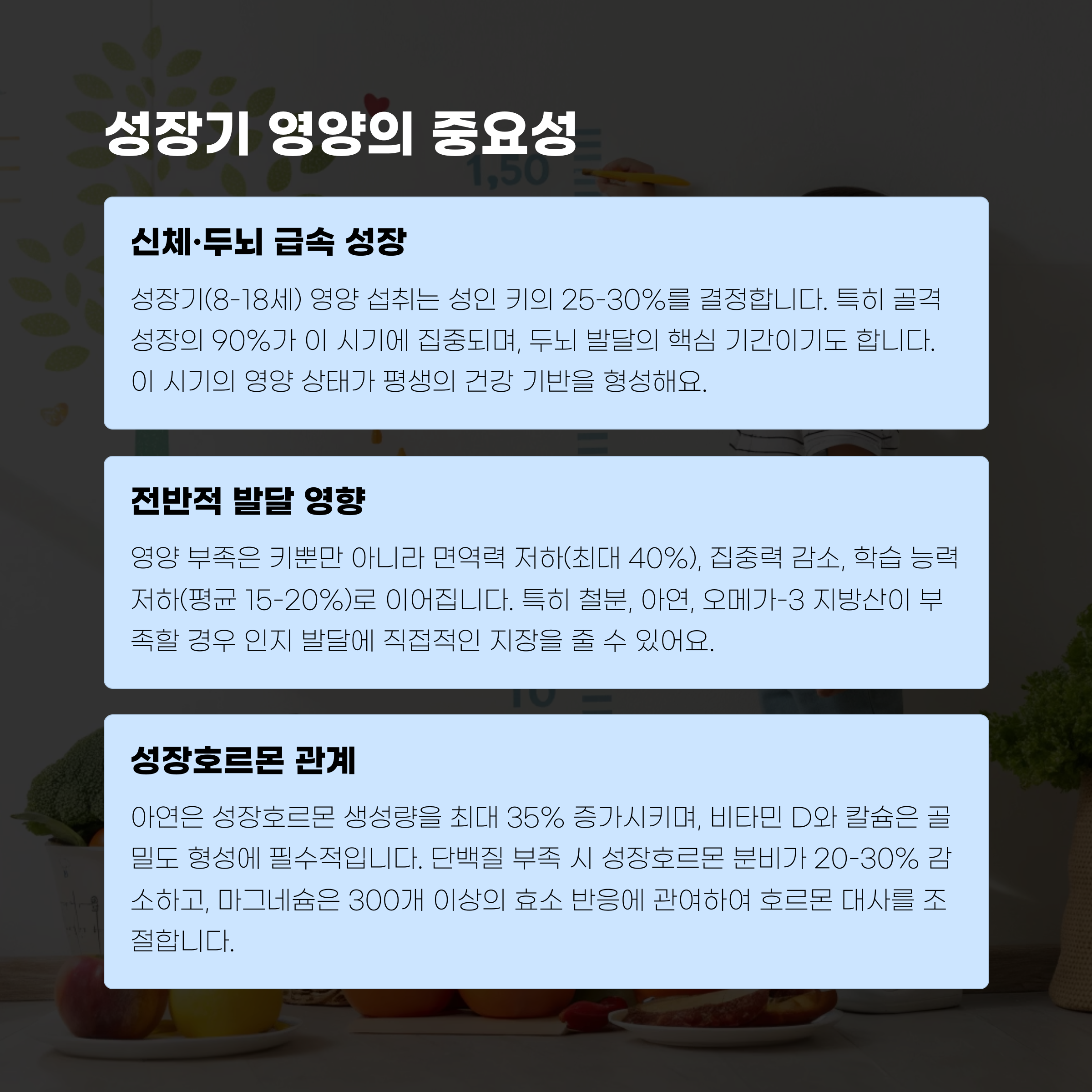 성장기는 키와 체력, 면역 체계가 빠르게 발달하는 시기입니다.