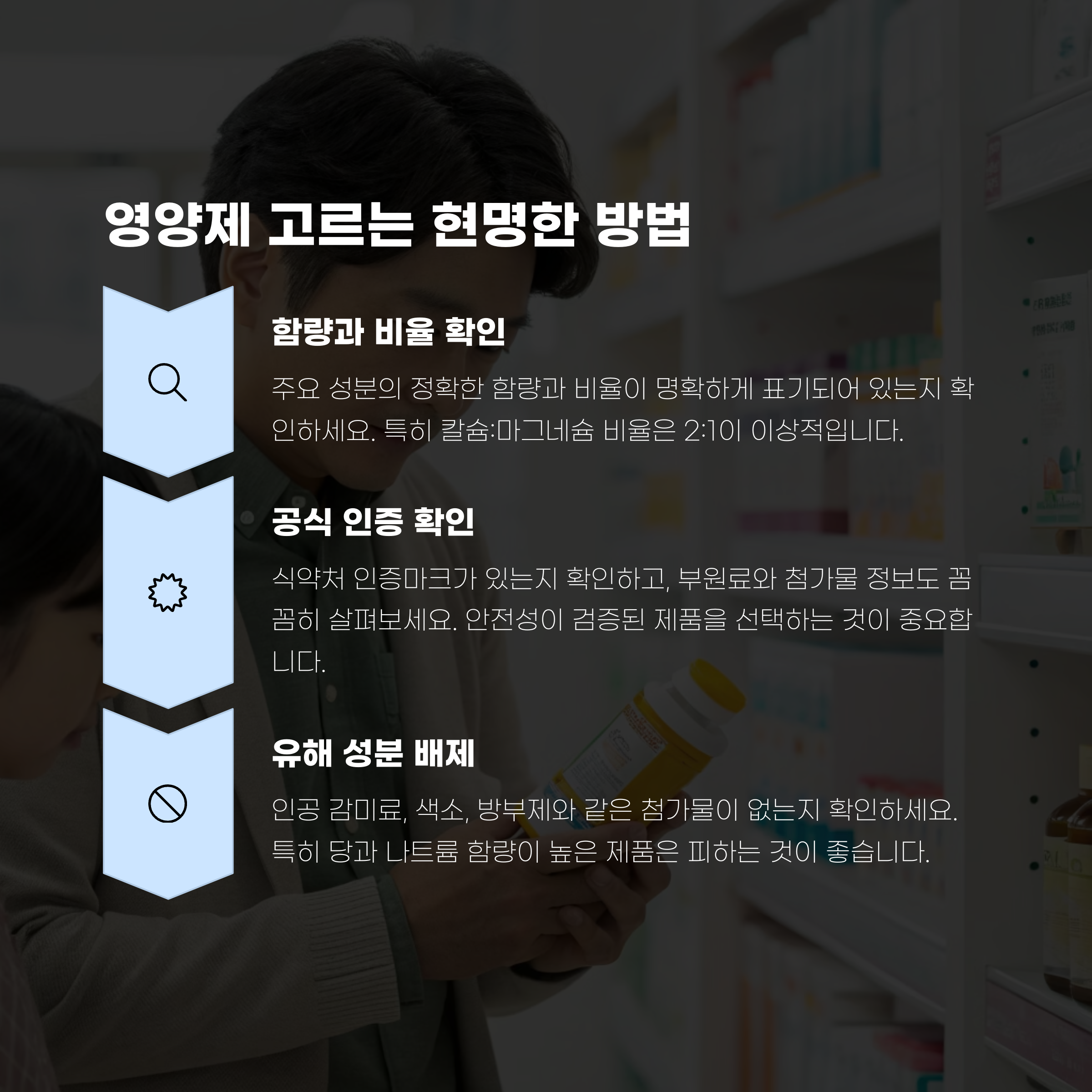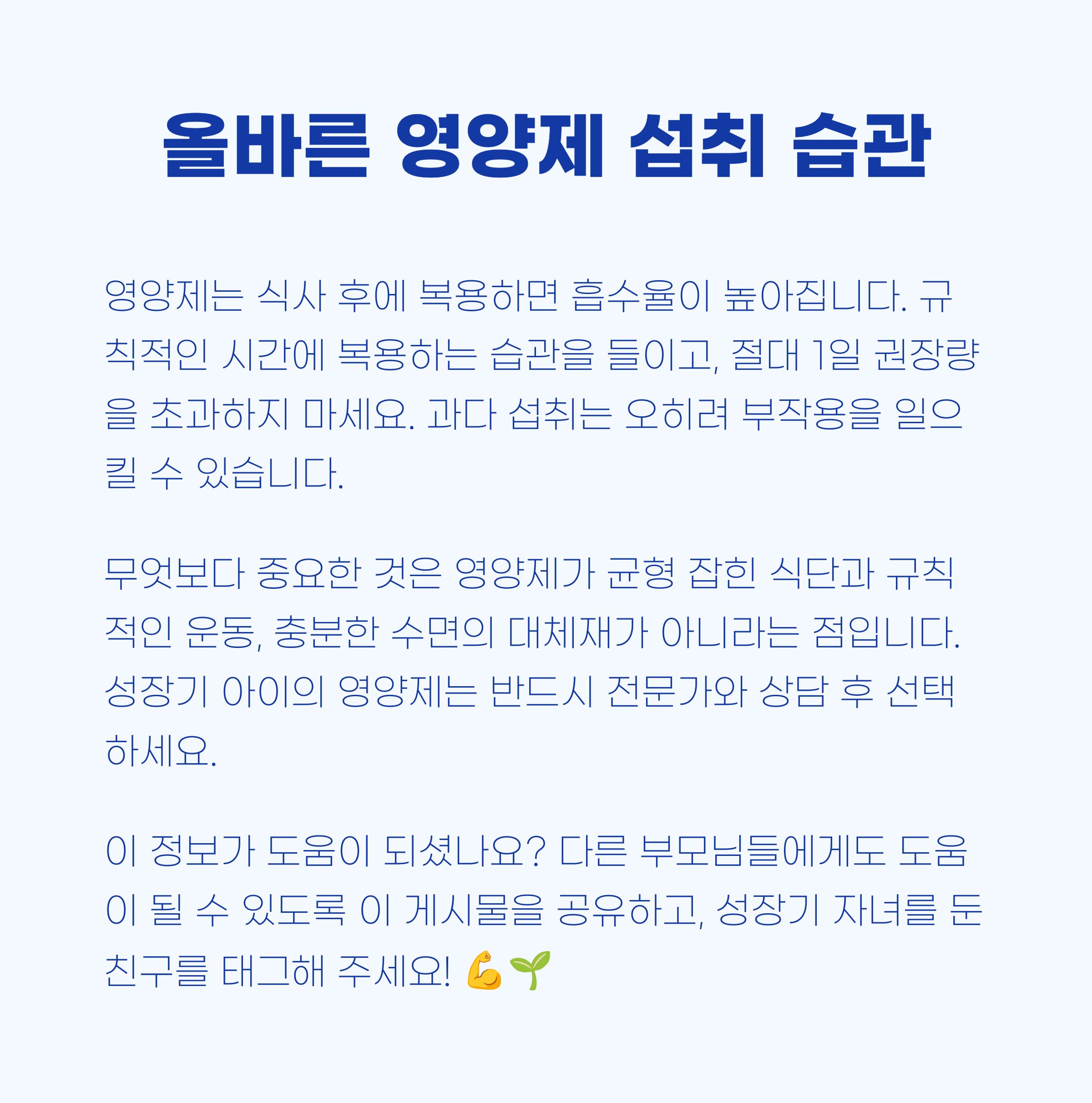 "영양제도 꾸준히, 올바르게 섭취해야 효과를 볼 수 있습니다."