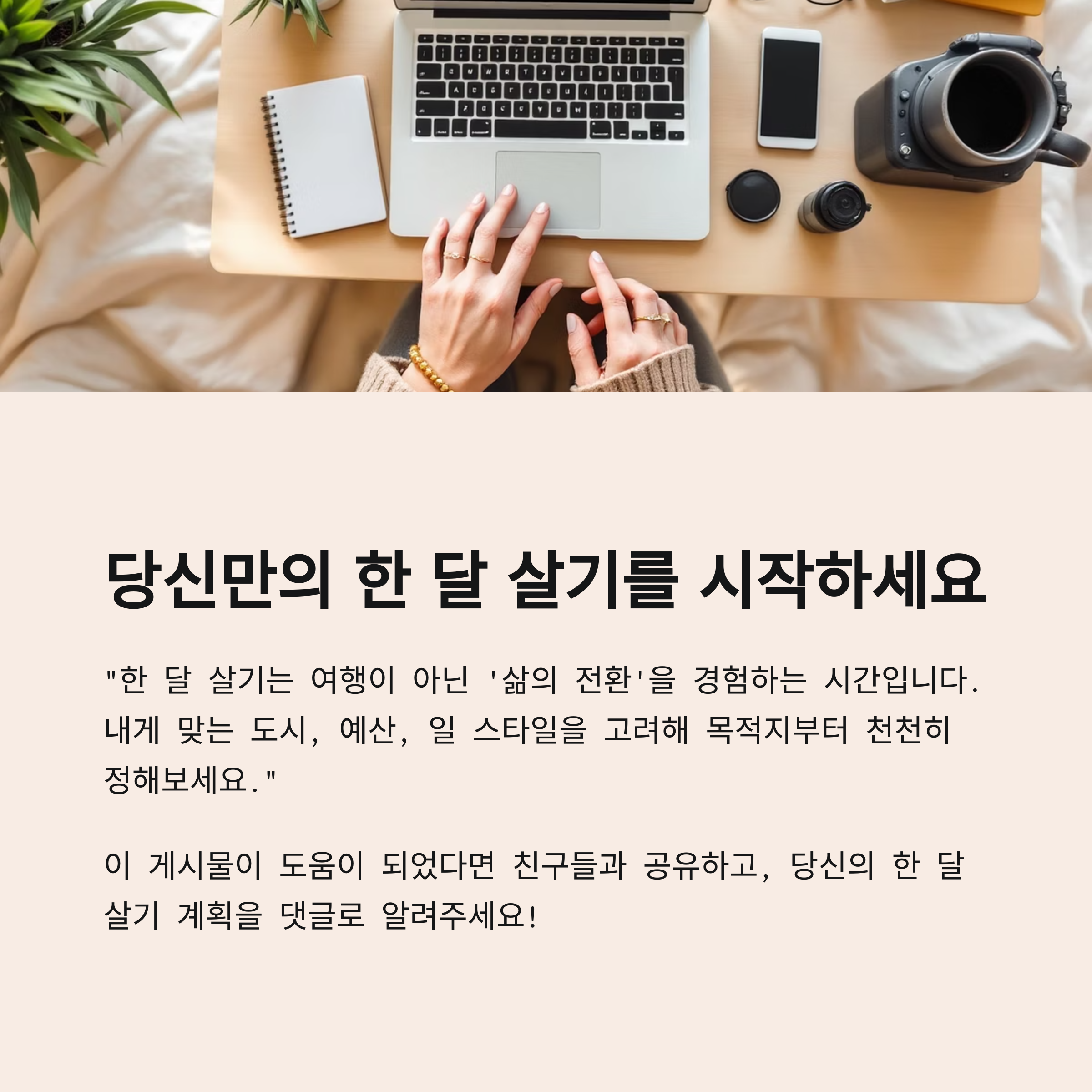 "내게 맞는 도시, 예산, 일 스타일을 고려해 목적지부터 천천히 정해보세요"