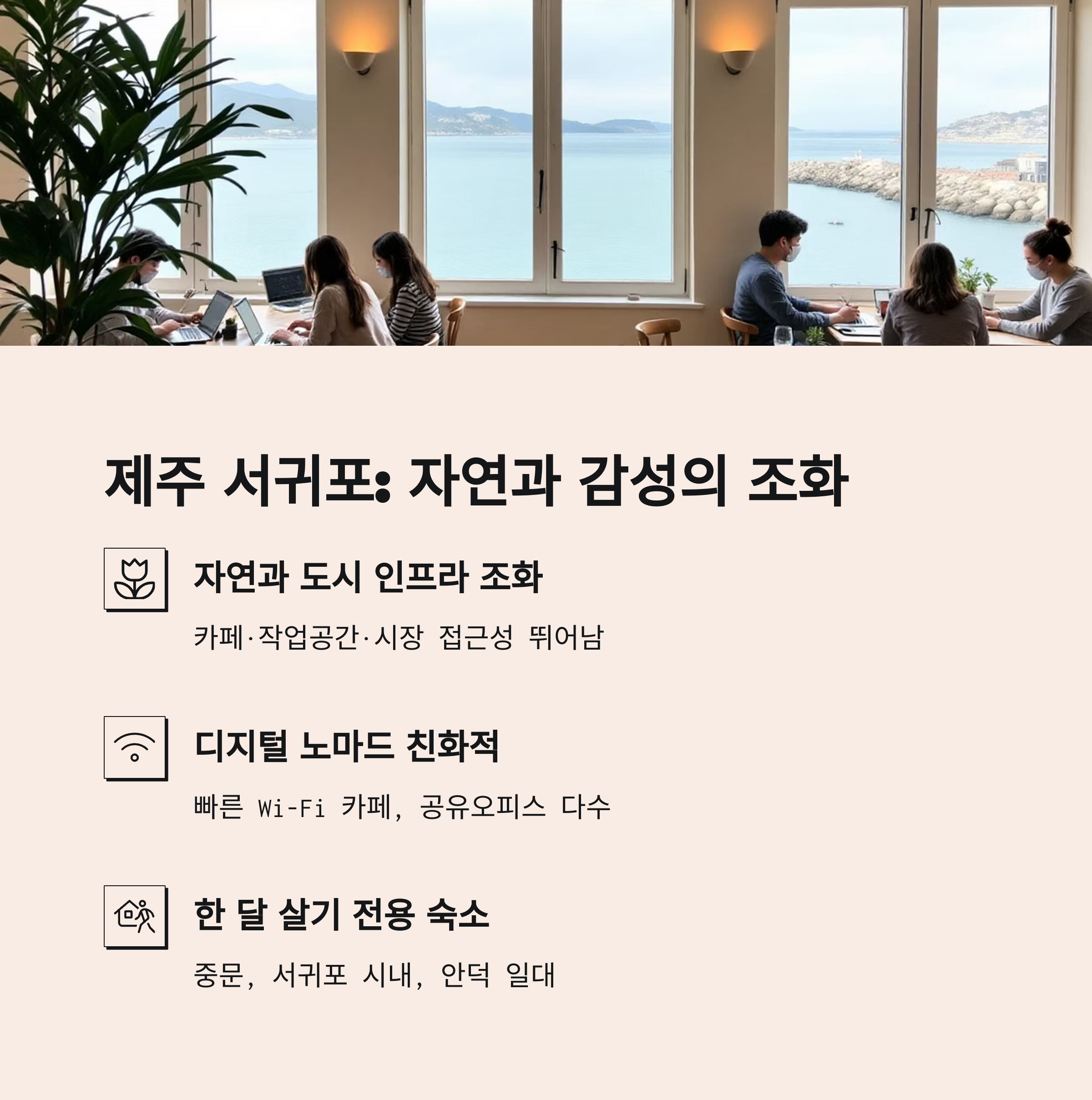 | 제주 서귀포 | 자연+감성도시 | 70만~120만 원 | 바다·숲길·카페 |