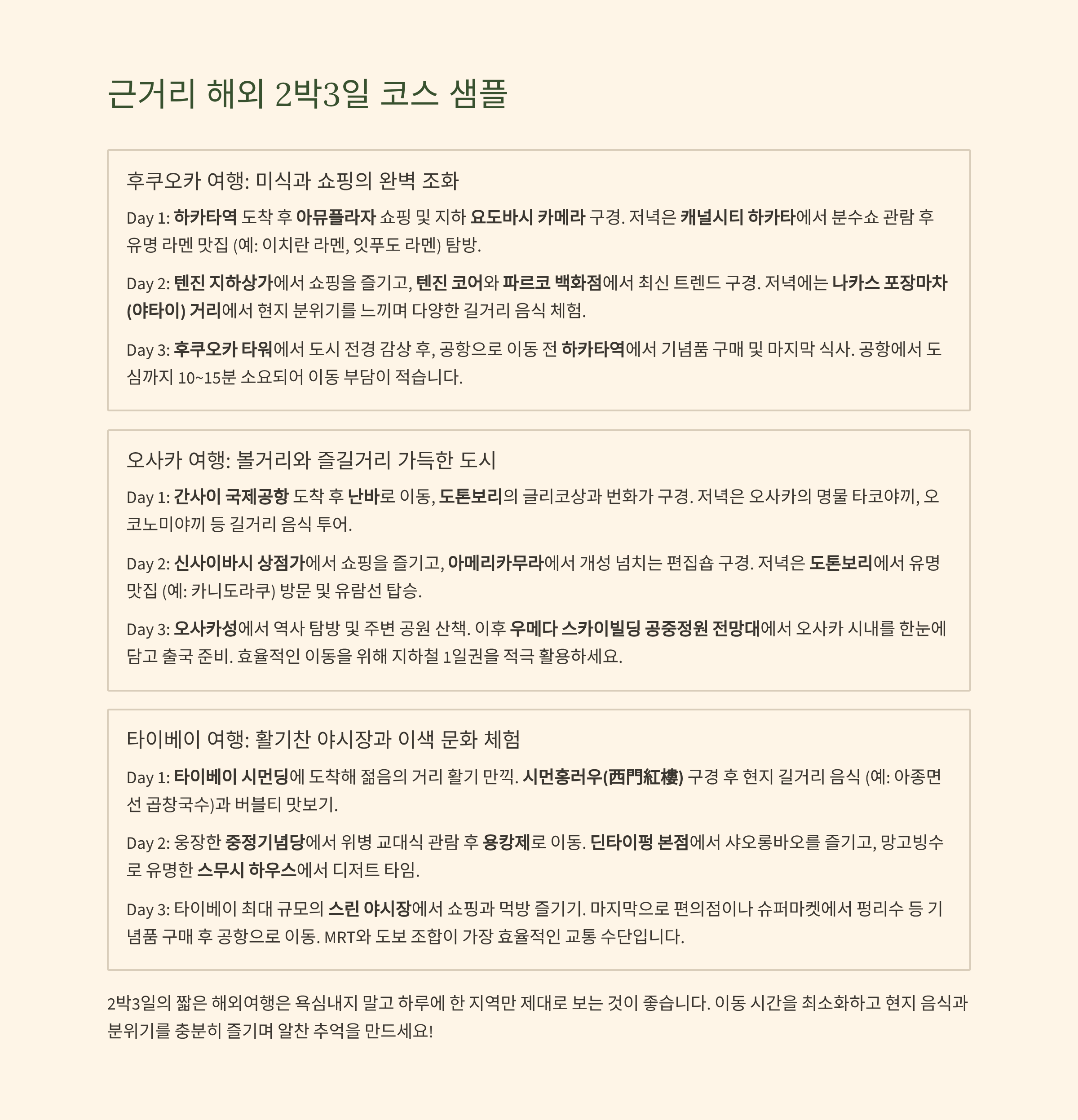 핵심: “가까운 스팟 2~3개를 한 블록으로 묶는다.” 이동비와 체력을 동시에 아낍니다.