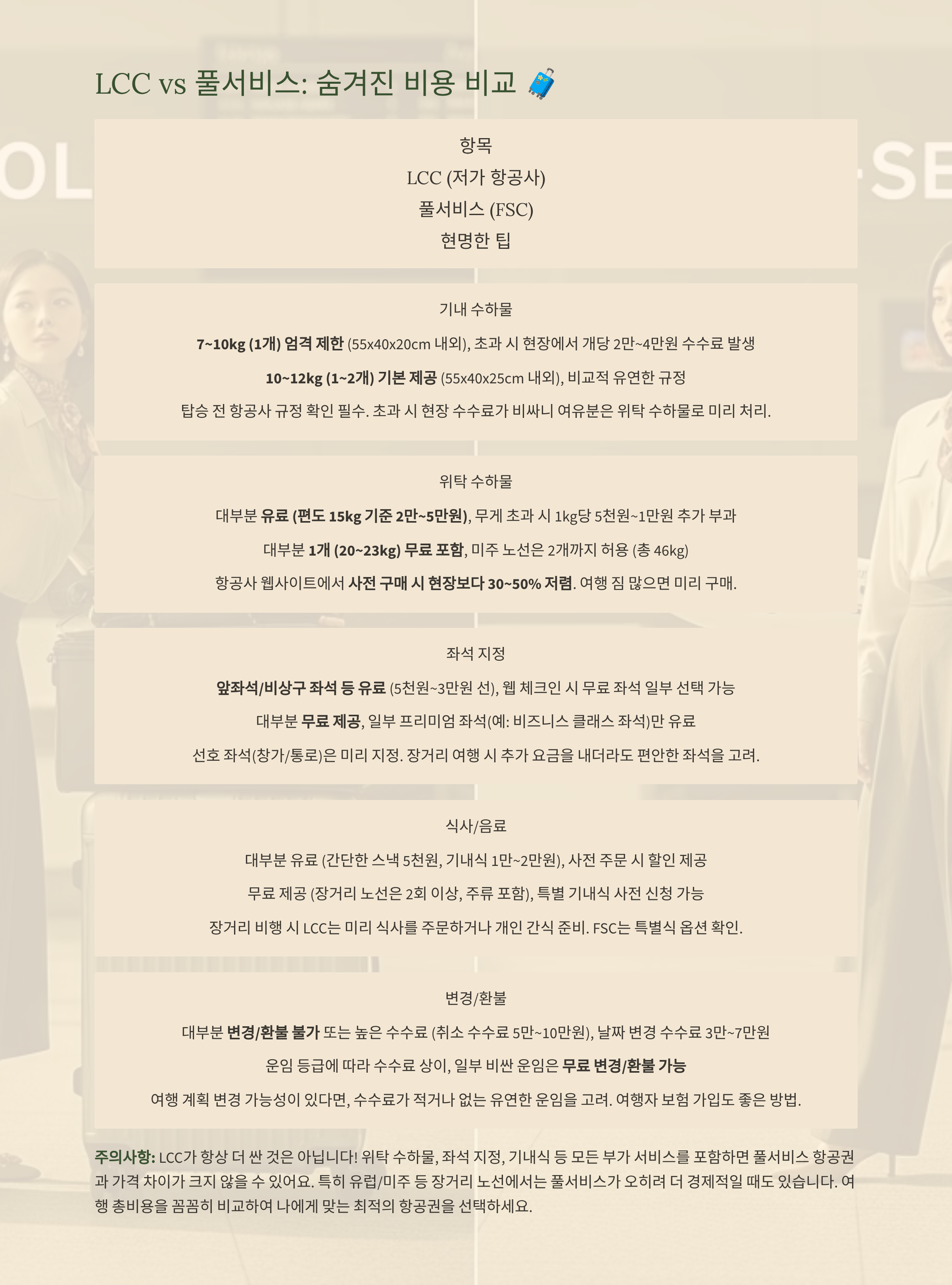 LCC vs 풀서비스: 수하물·좌석·부가요금 체크리스트