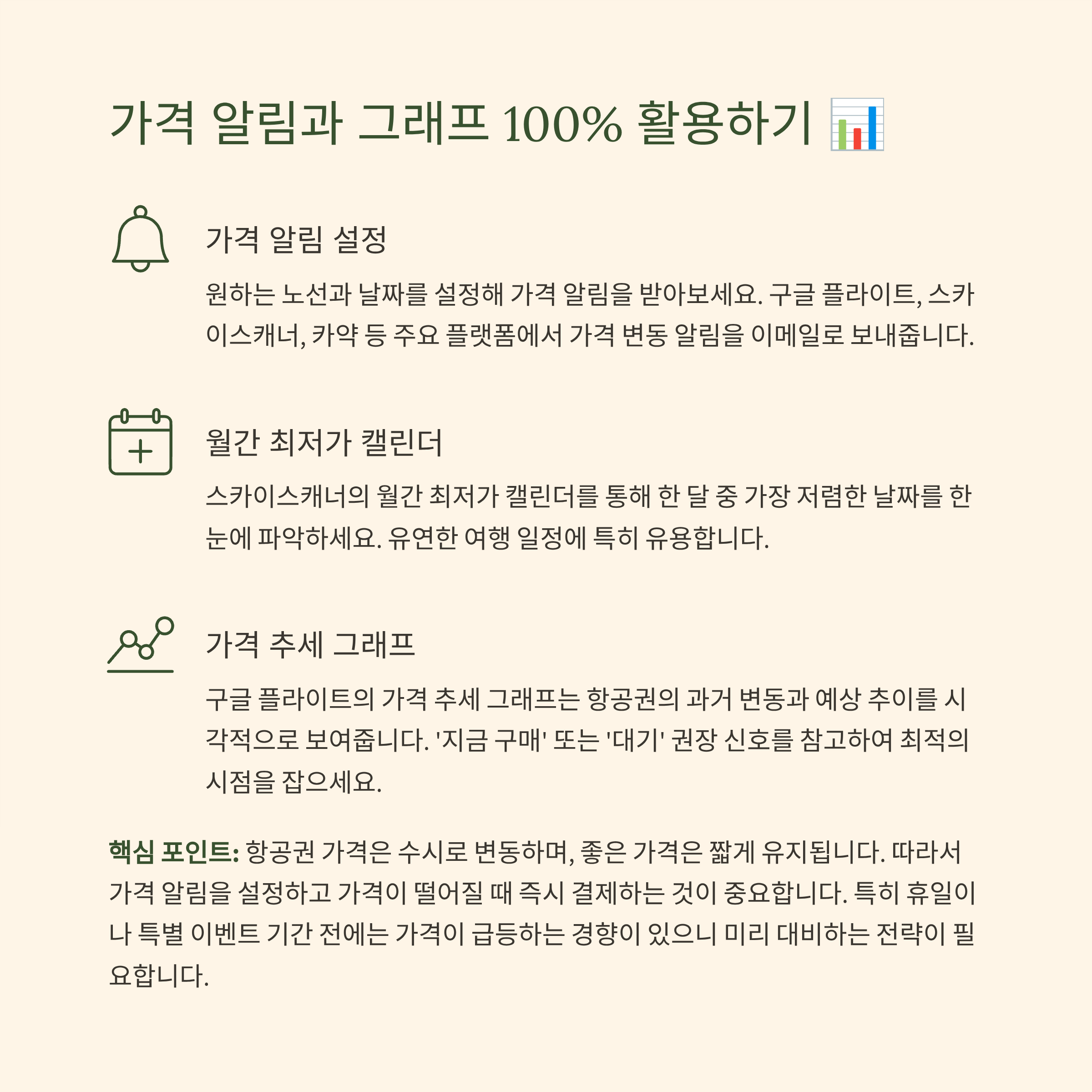 핵심: 알림을 설정해두고 “떨어질 때” 결제. 동일 운임은 짧게 유지됩니다.